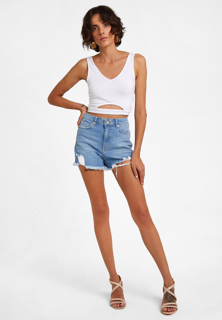 Yüksek Bel Şort ve Crop Atlet Kombini