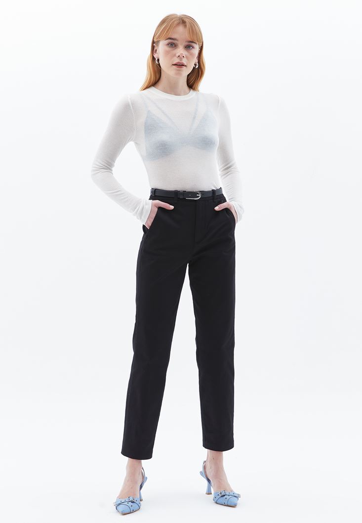 • Bayan Siyah Yüksek Bel Straight-Fit Pantolon