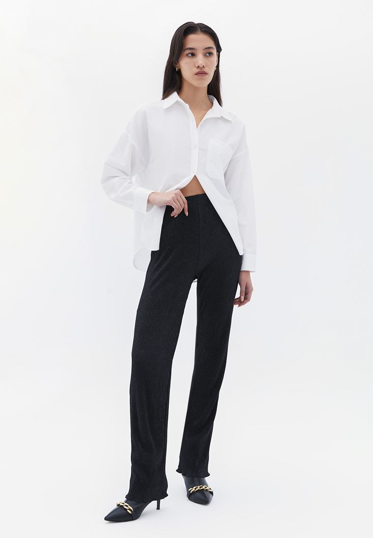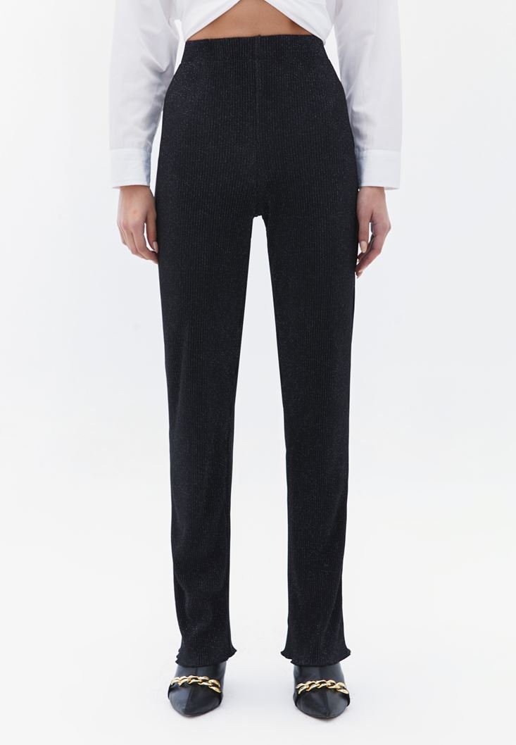 Siyah Yüksek Bel Straight-Fit Pantolon