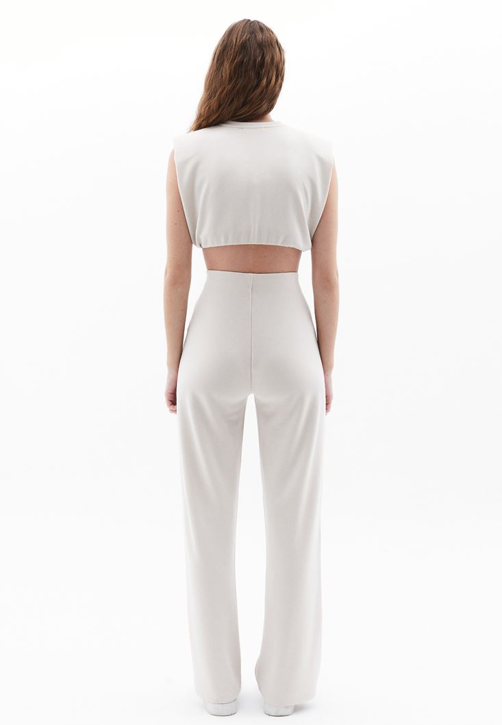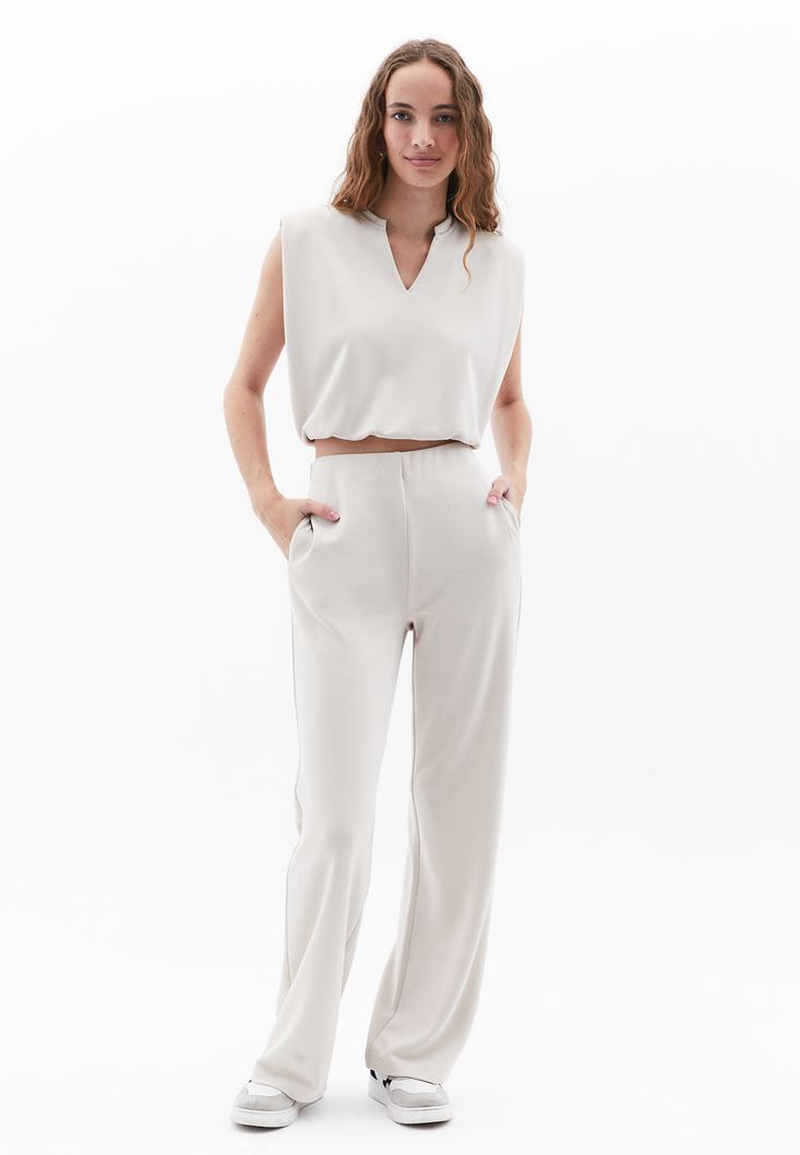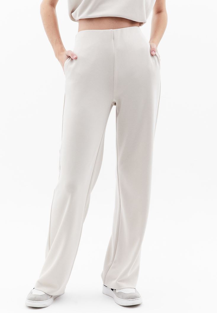 Bej Yüksek Bel Straight-Fit Pantolon ( MODAL )