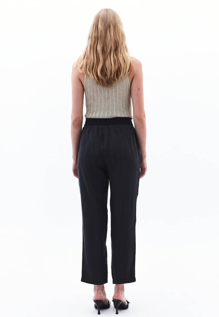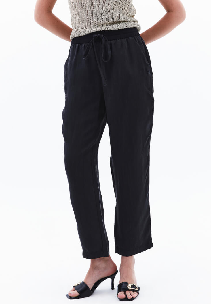 Siyah Yüksek Bel Straight-Fit Pantolon ( TENCEL™ )