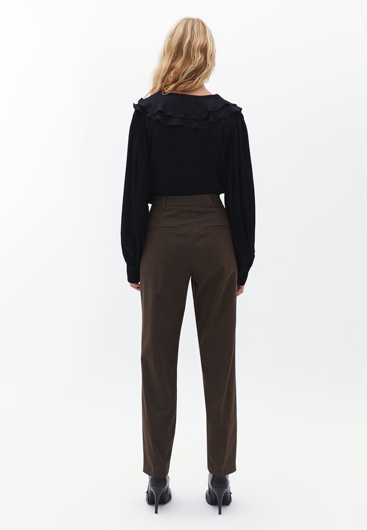 Kahverengi Yüksek Bel Straight-Fit Pantolon