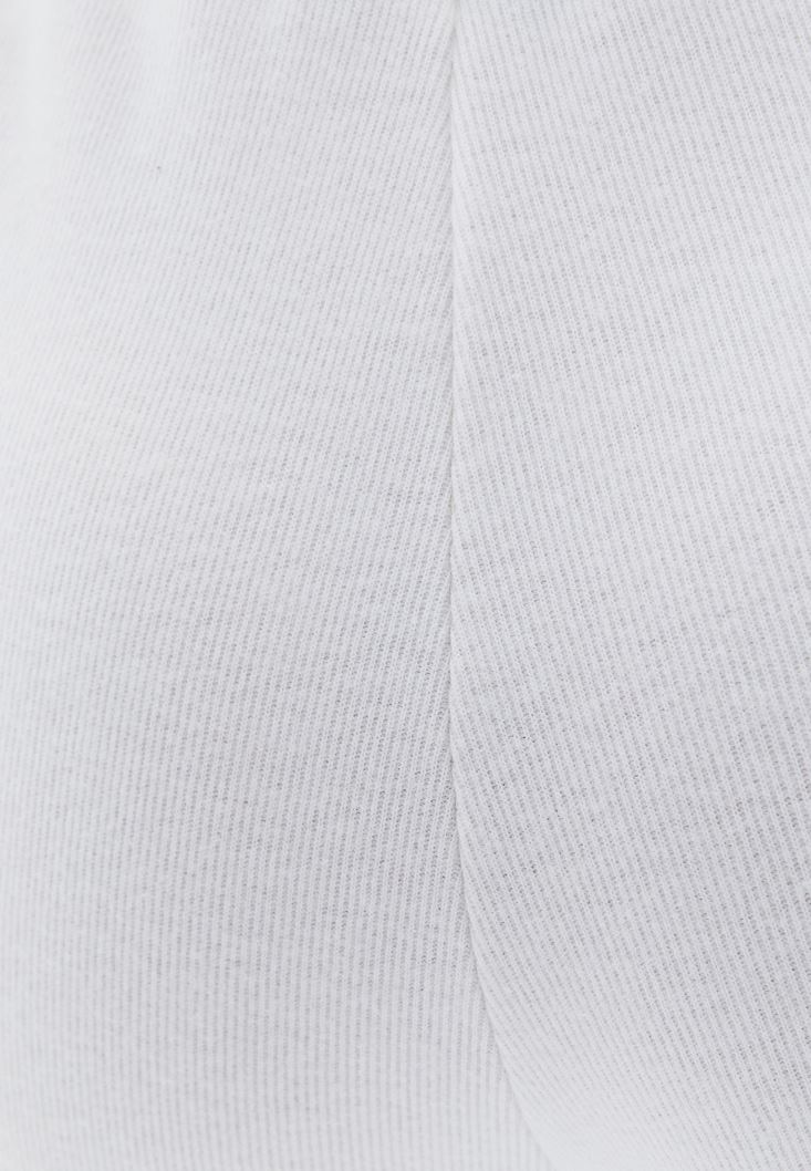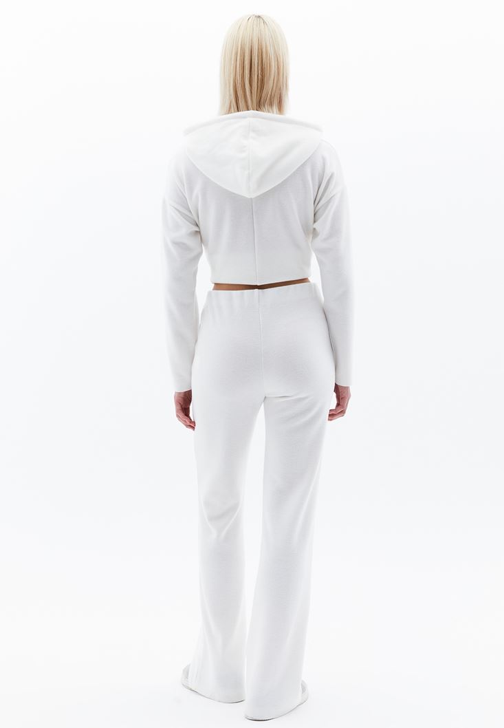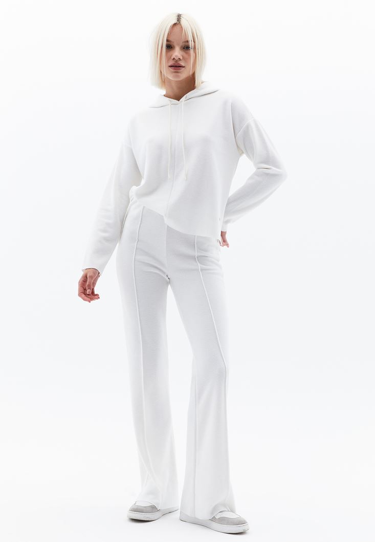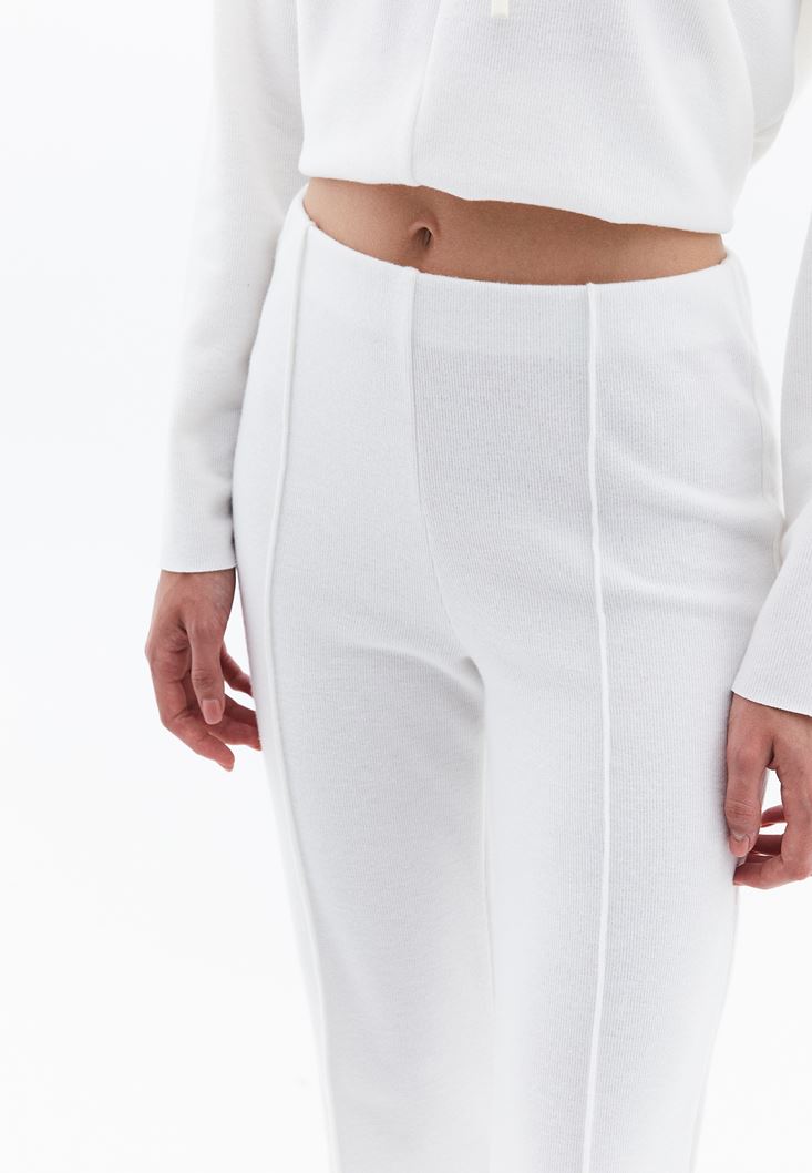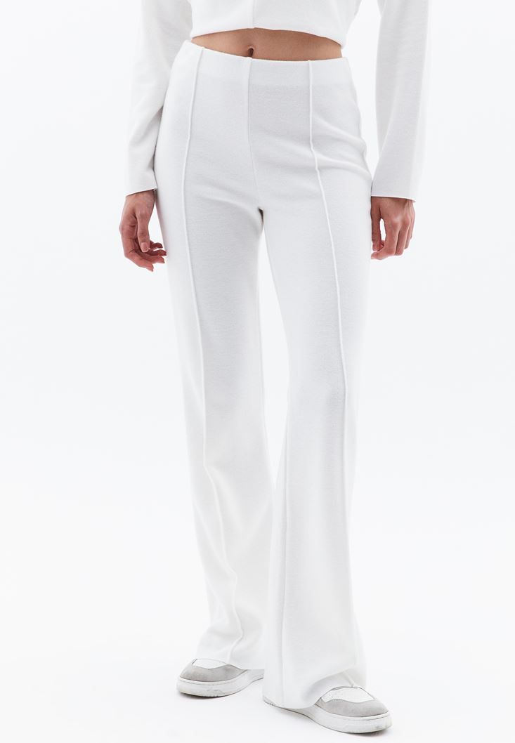 Krem Yüksek Bel Straight-Fit Pantolon