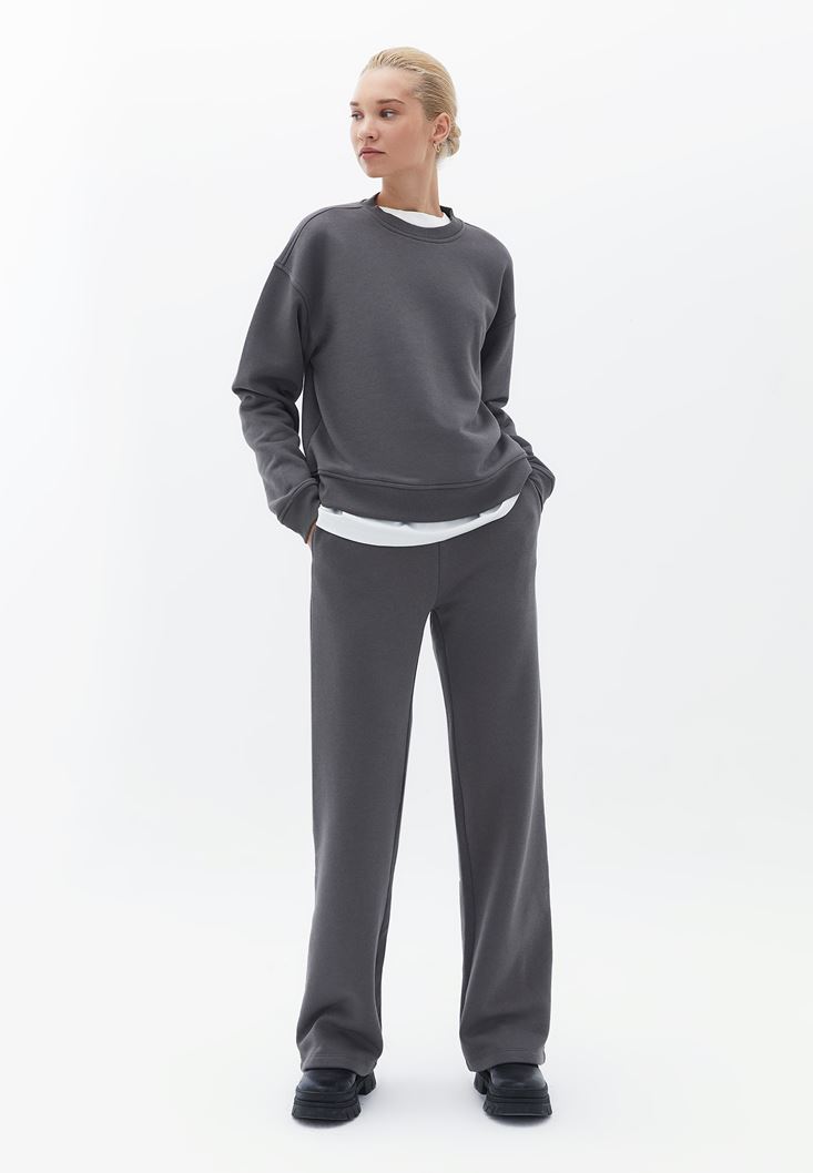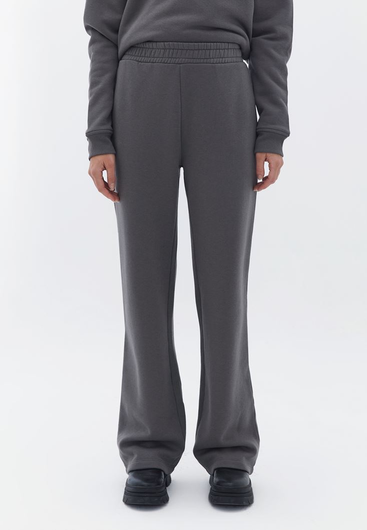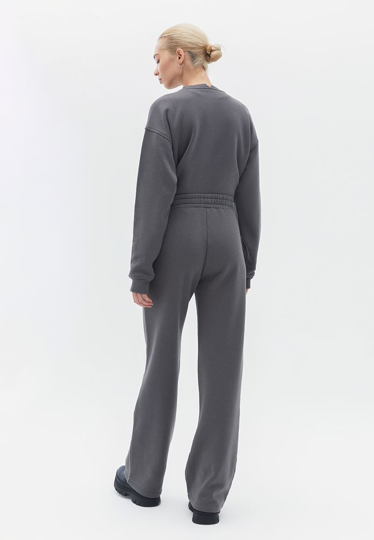 Gri Yüksek Bel Straight-Fit Pantolon