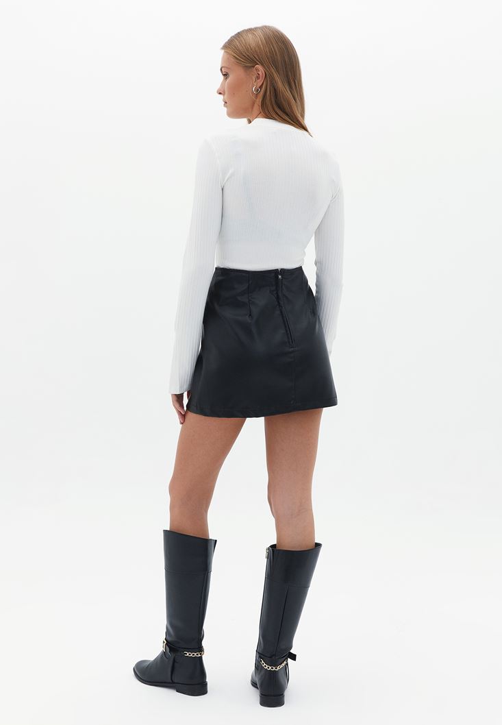 • Bayan Siyah Yüksek Bel Vegan Deri Etek