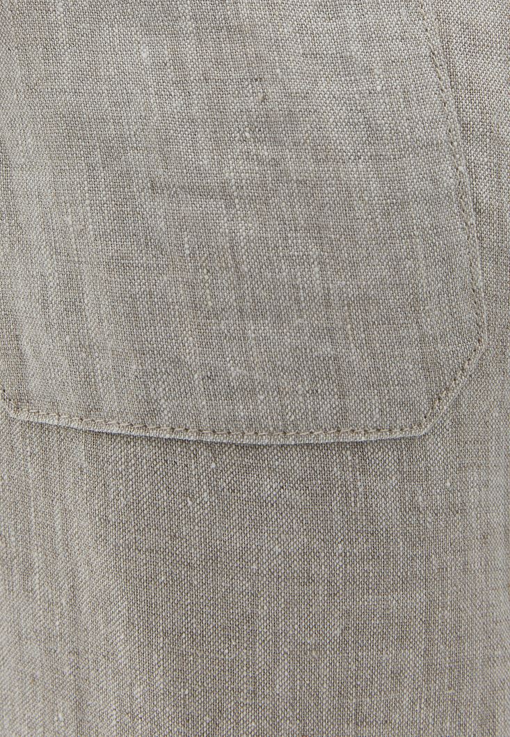 %100 keten içerikli doğal doku, nem transferi sağlayan kumaş, yüksek bel, bedenden uzak wide fit, ön kısmı pile detaylı, önü ve arkası iki cepli.