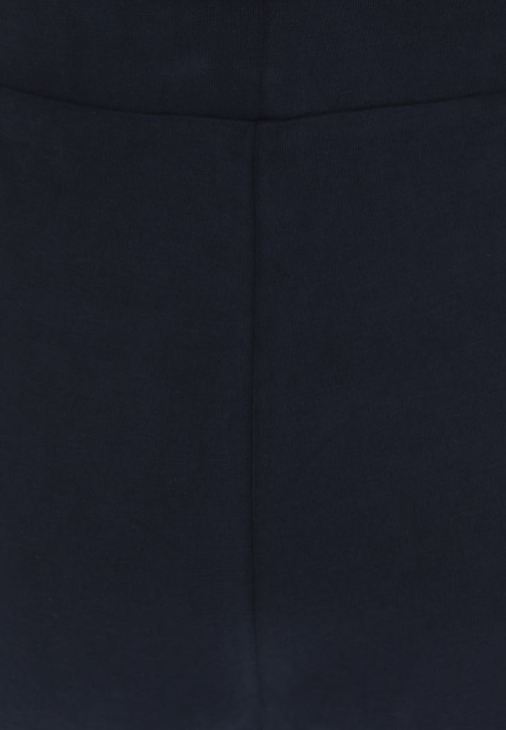 Modal karışımlı yumuşak doku, yüksek bel, bedenden uzak rahat fit, bol paça, beli lastikli ve pile detaylı.