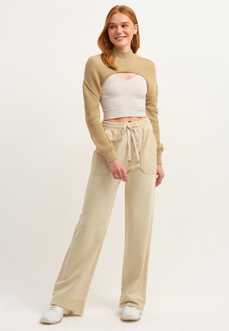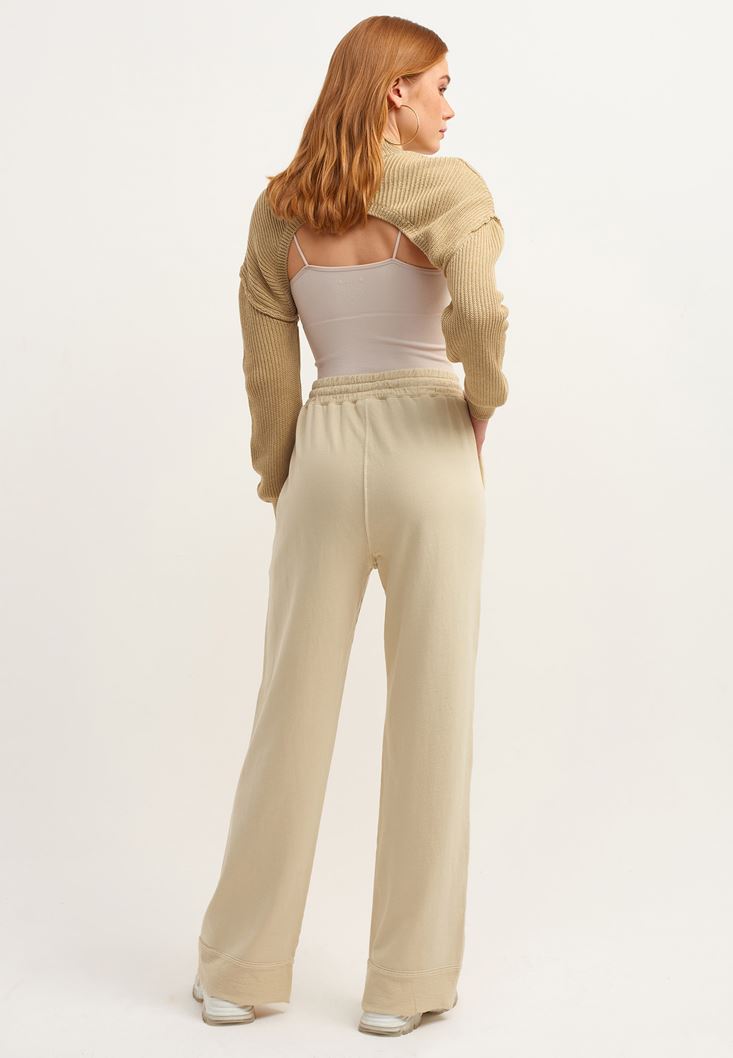 Açık Krem Yüksek Bel Wide-Leg Pantolon