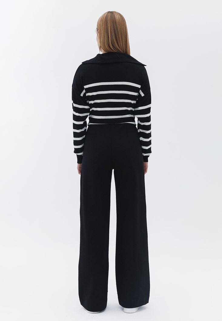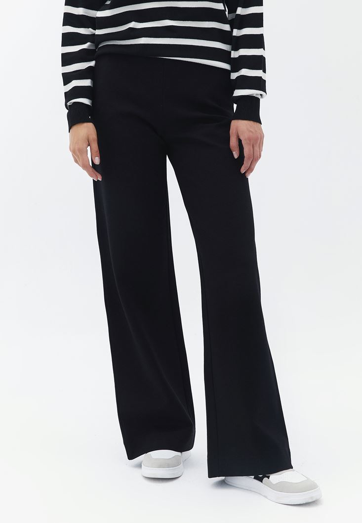Siyah Yüksek Bel Wide-Leg Pantolon