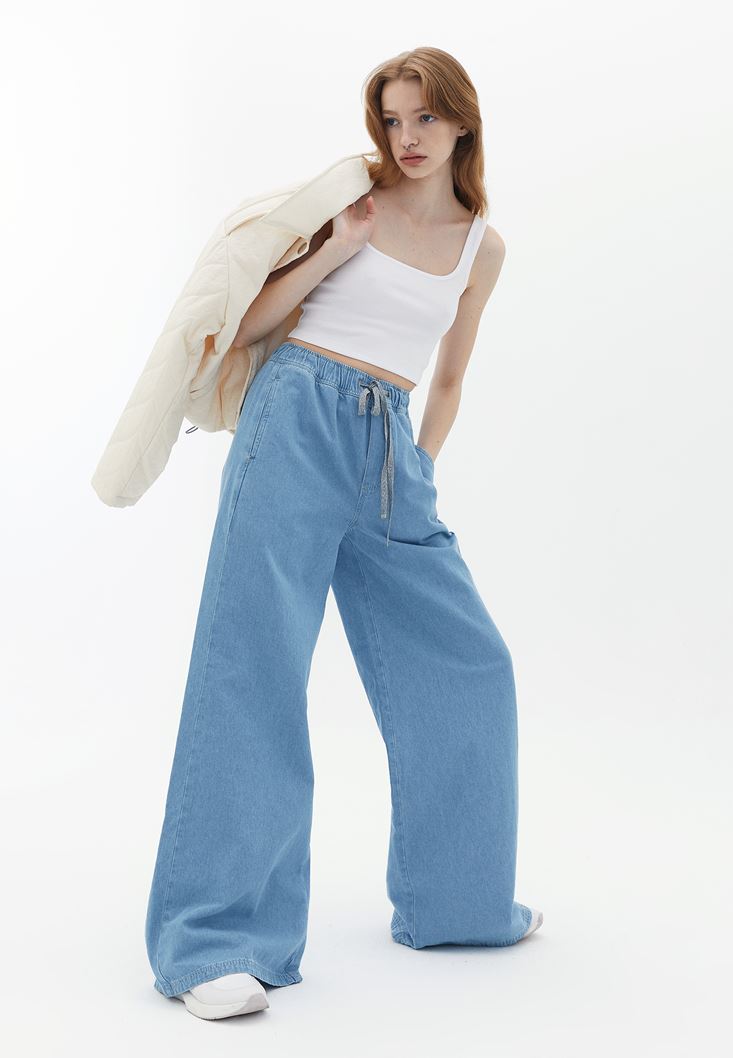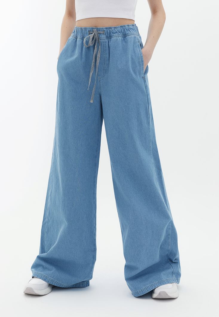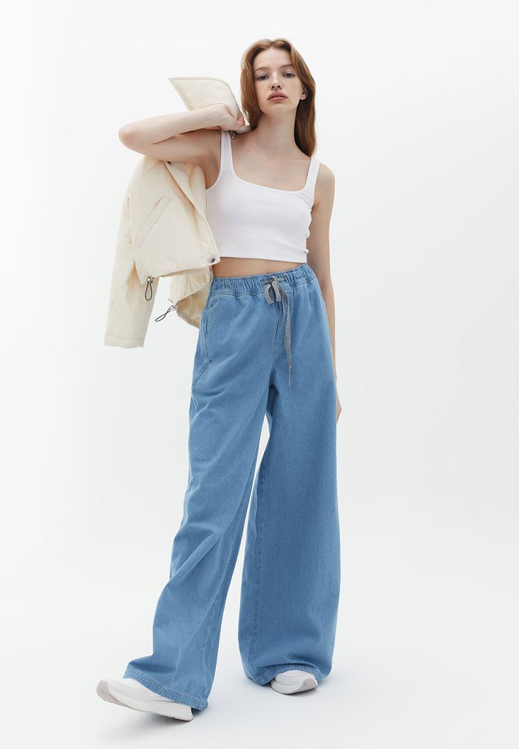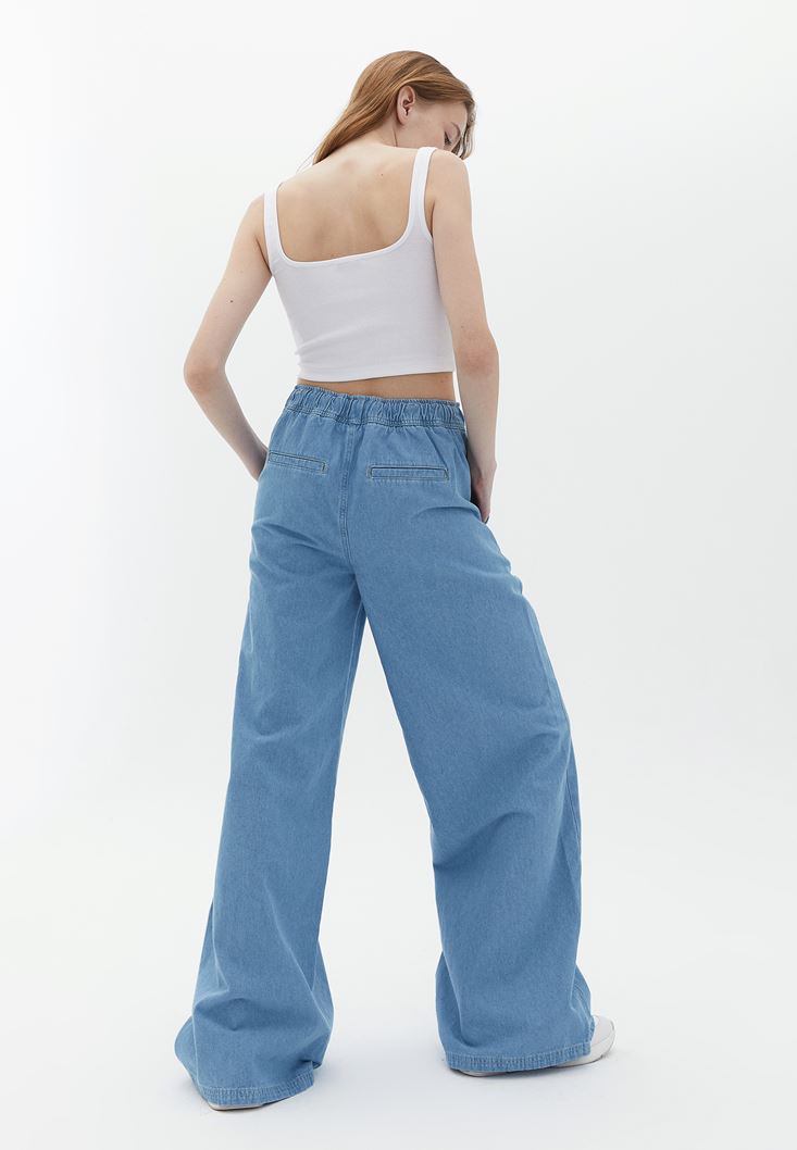 • Bayan Mavi Yüksek Bel Wide-Leg Pantolon