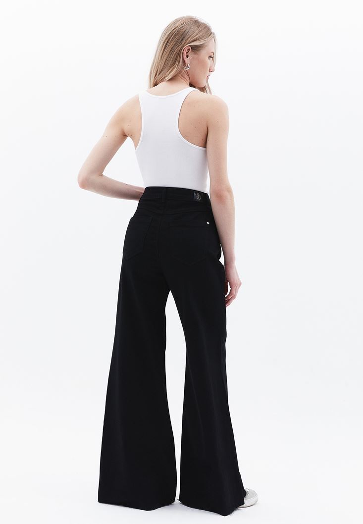 Siyah Yüksek Bel Wide-Leg Pantolon