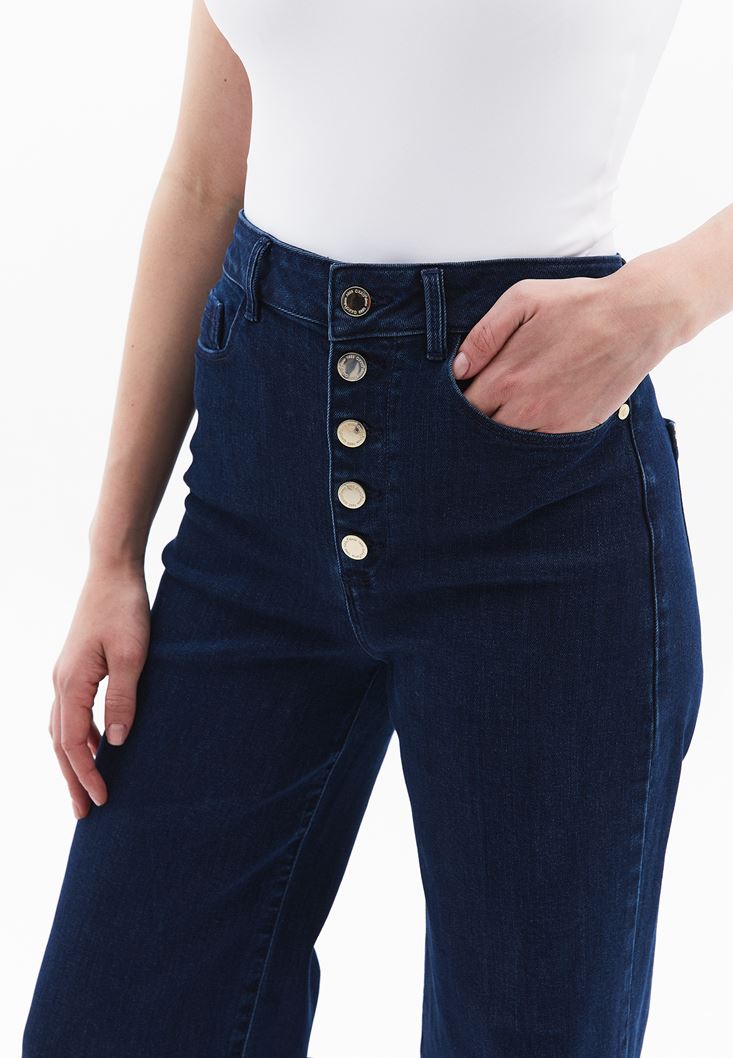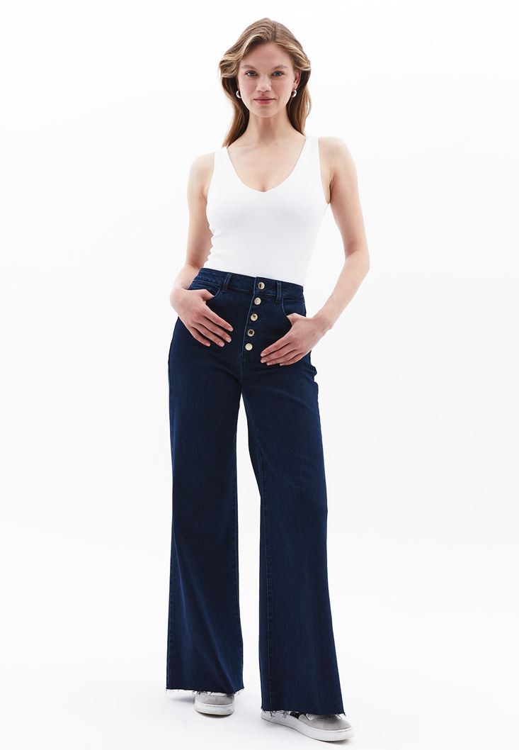 • Bayan Lacivert Yüksek Bel Wide-Leg Pantolon
