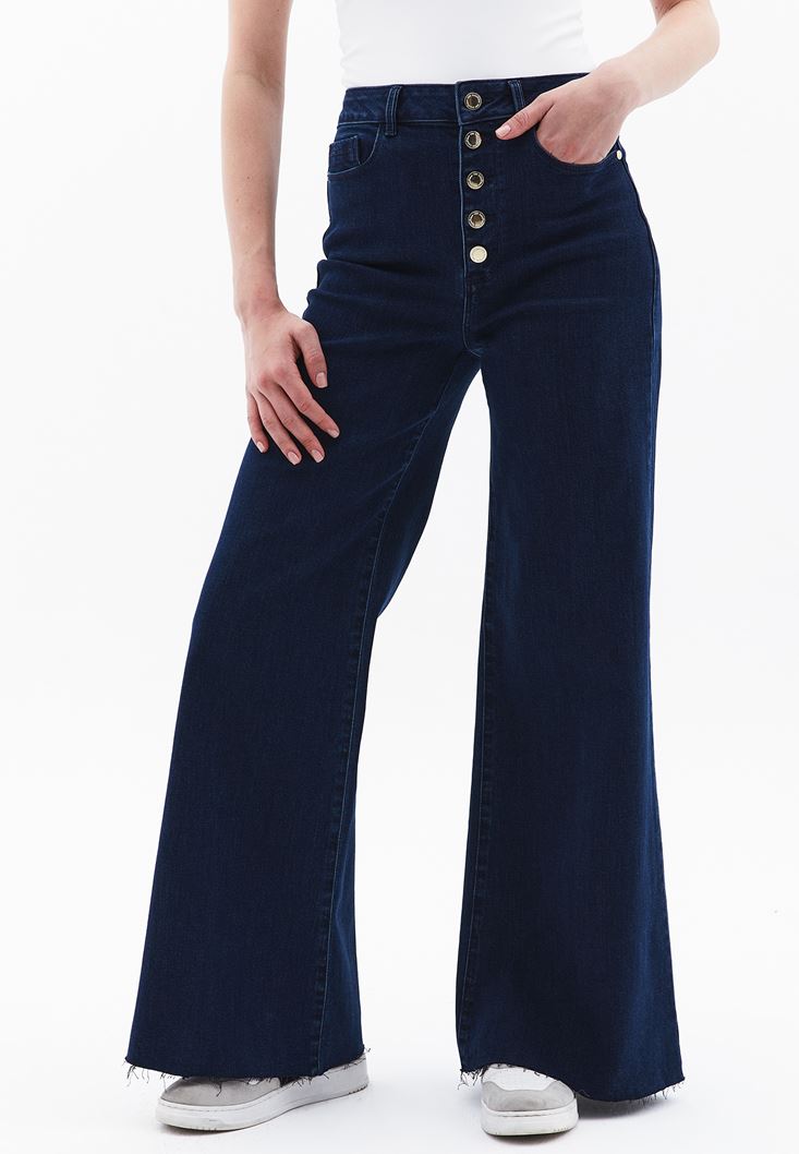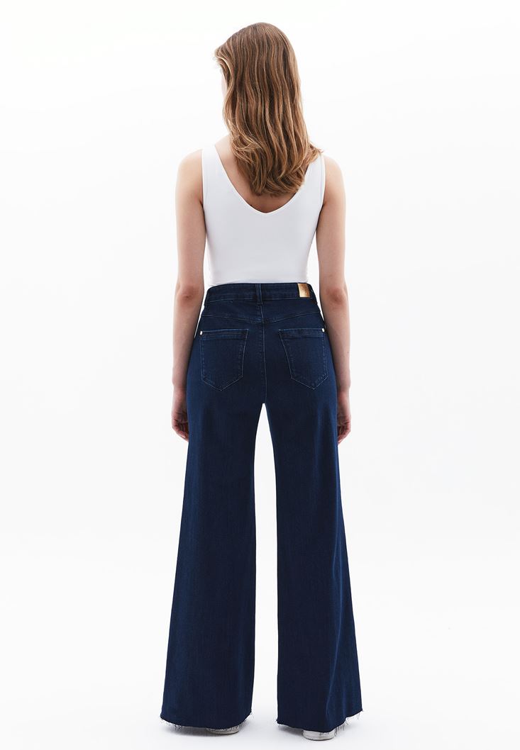 Lacivert Yüksek Bel Wide-Leg Pantolon