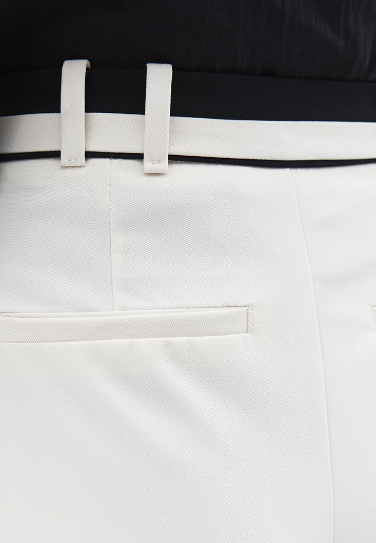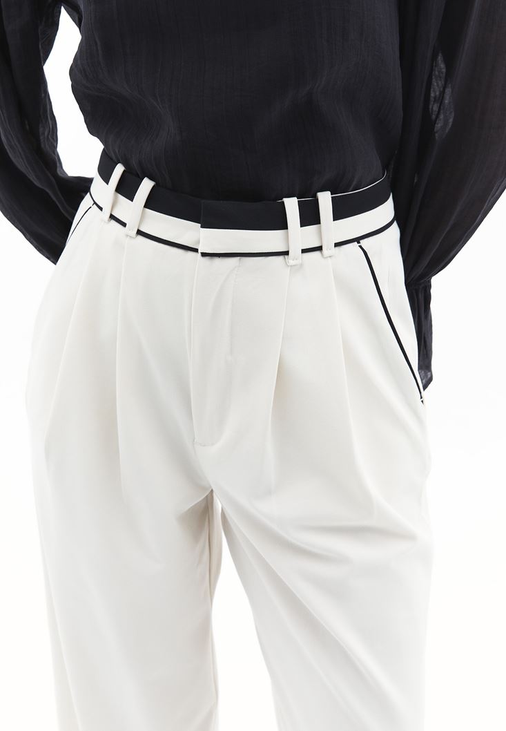 • Bayan Krem Yüksek Bel Wide-Leg Pantolon
