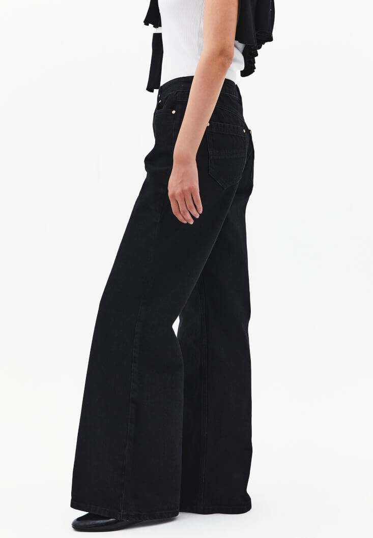 • Bayan Siyah Yüksek Bel Wide-Leg Pantolon