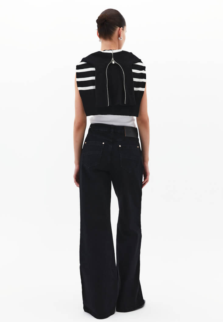 Siyah Yüksek Bel Wide-Leg Pantolon