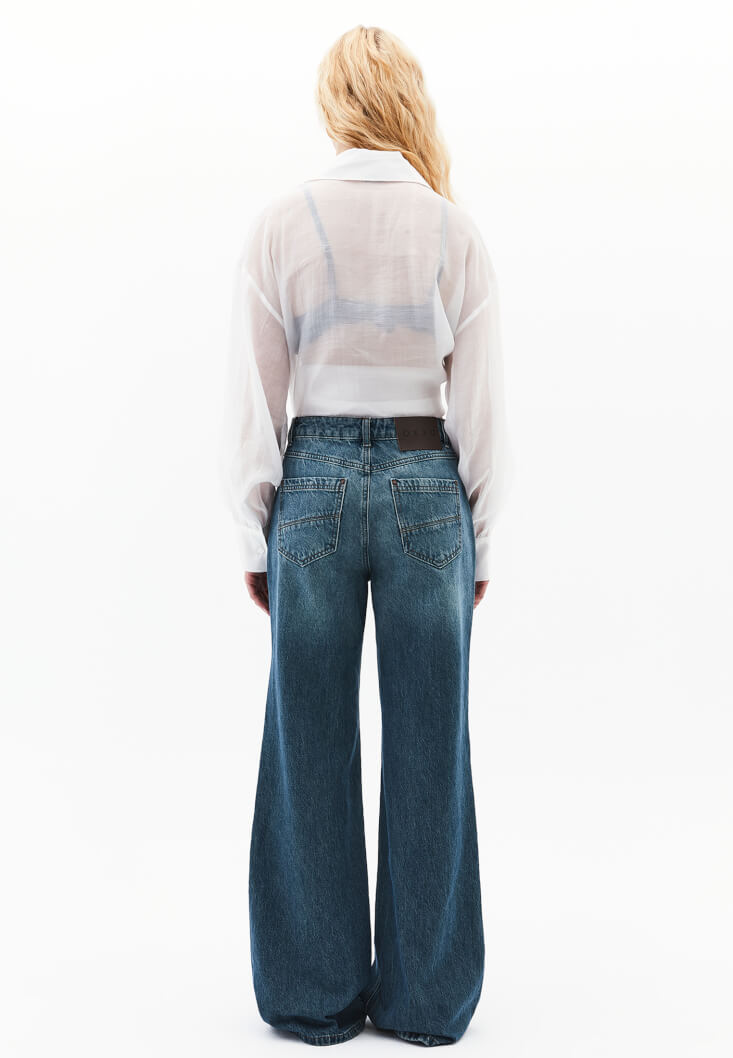 Mavi Yüksek Bel Wide-Leg Pantolon