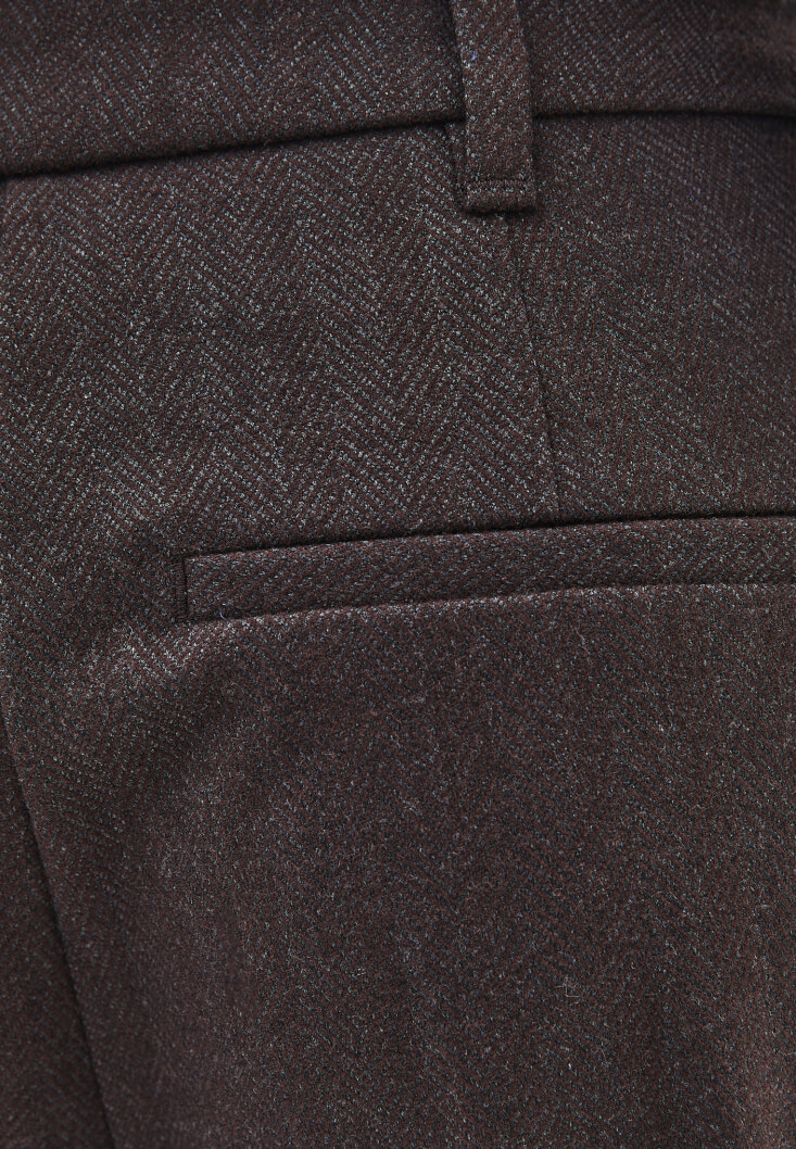 Viskon karışımlı özel doku, yüksek bel, bol paça, iki cepli, bedenden uzak rahat fit, ön bel kısmı pileli.