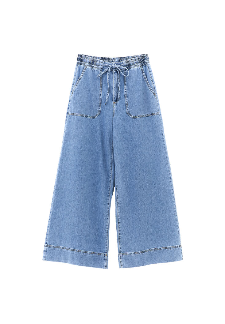 • Bayan Mavi Yüksek Bel Wide-Leg Pantolon