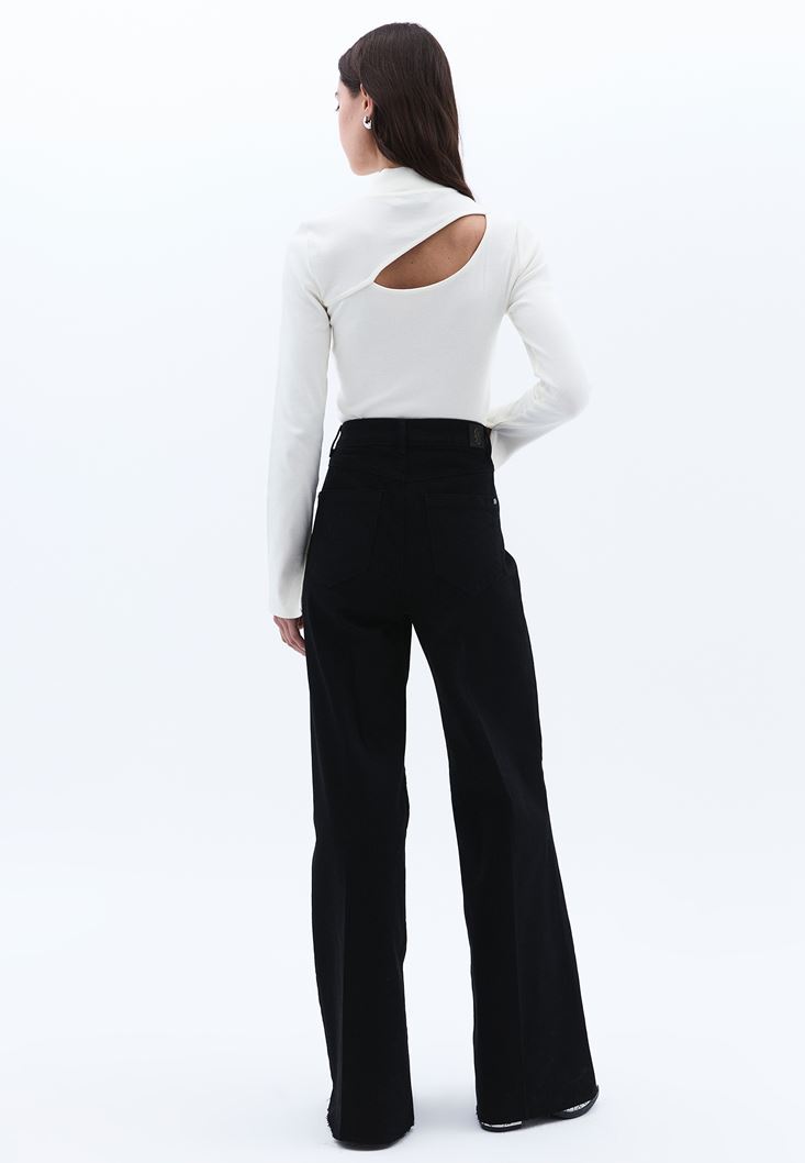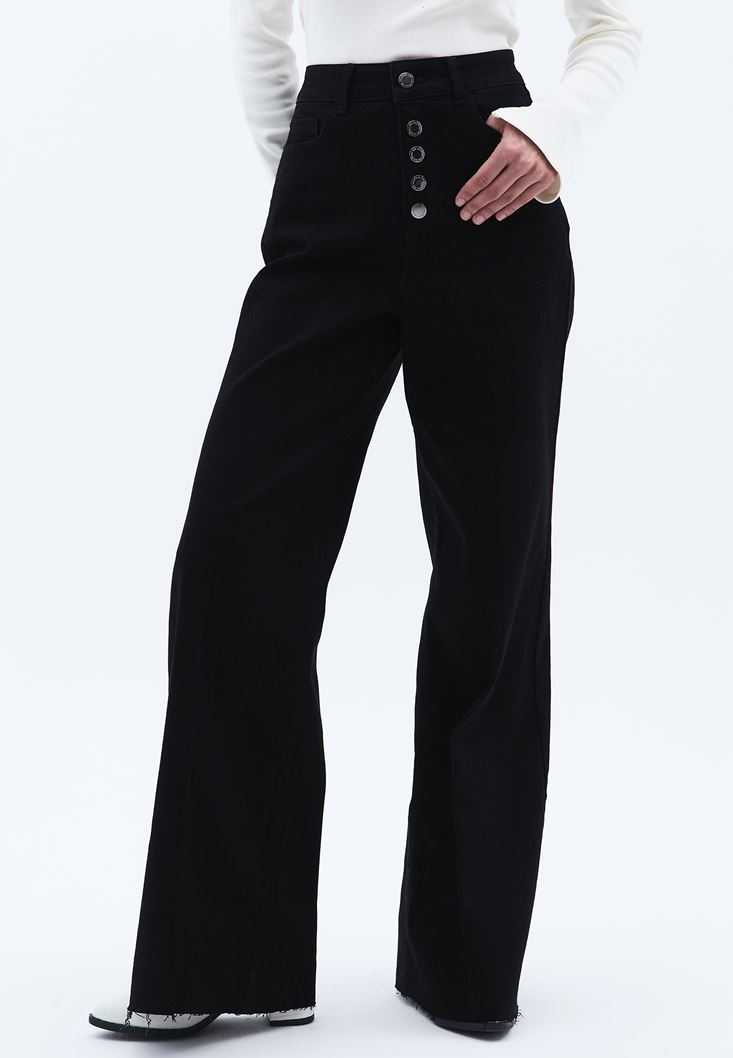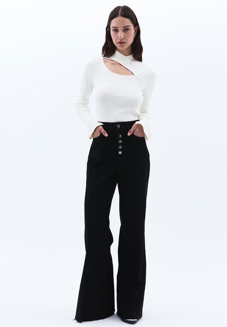 Siyah Yüksek Bel Wide-Leg Pantolon