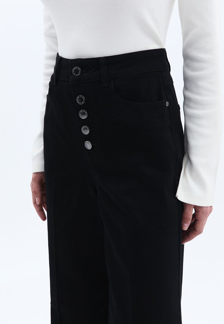 • Bayan Siyah Yüksek Bel Wide-Leg Pantolon