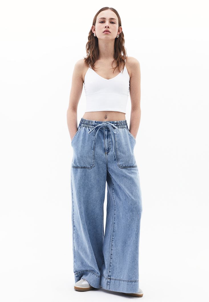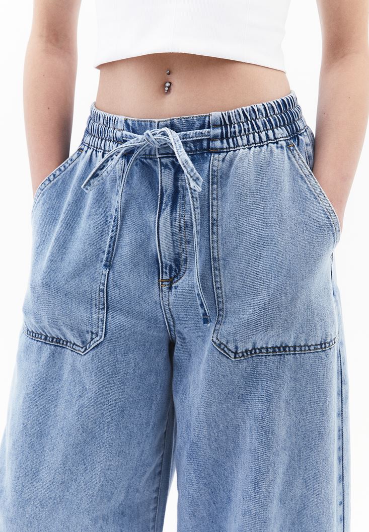 • Bayan Mavi Yüksek Bel Wide-Leg Pantolon