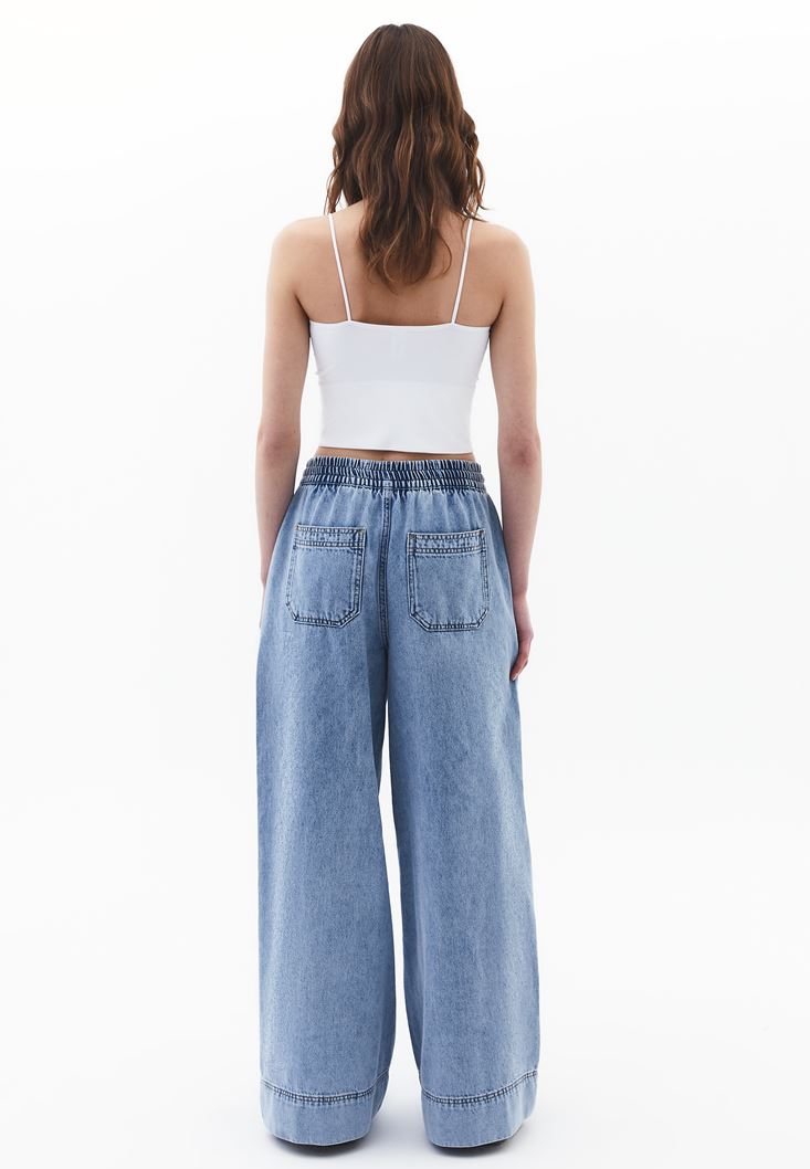 Mavi Yüksek Bel Wide-Leg Pantolon