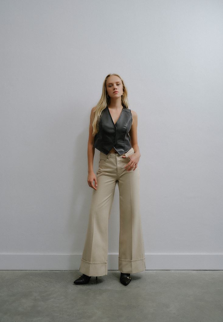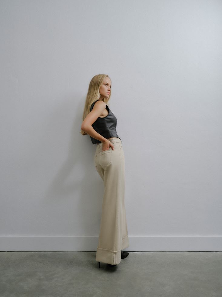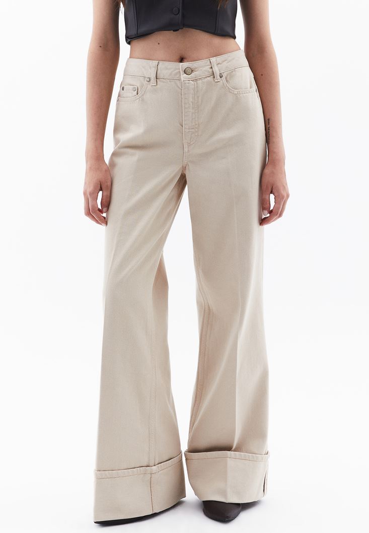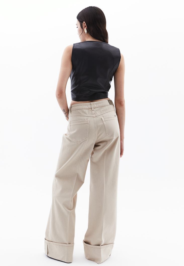 • Bayan Bej Yüksek Bel Wide-Leg Pantolon