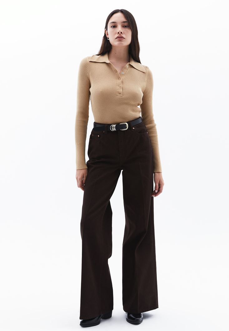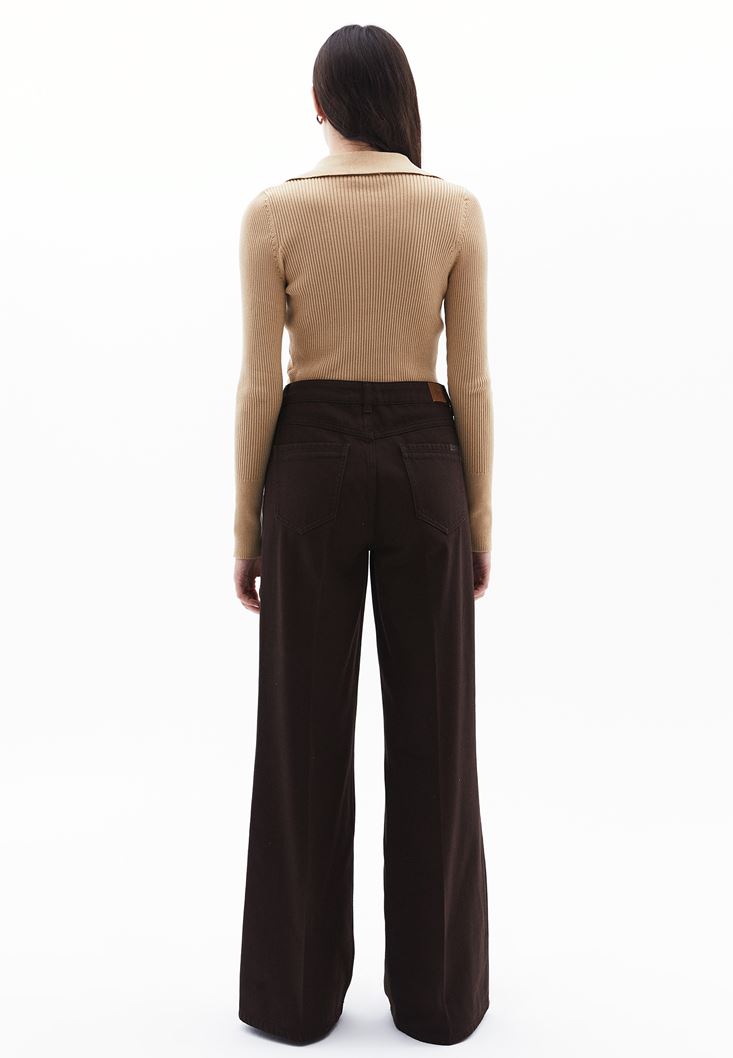 Kahverengi Yüksek Bel Wide-Leg Pantolon