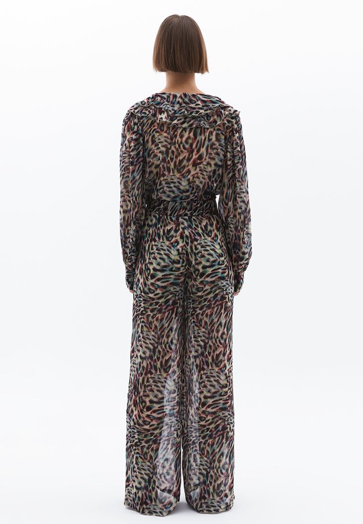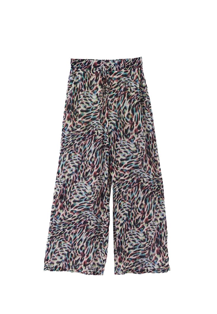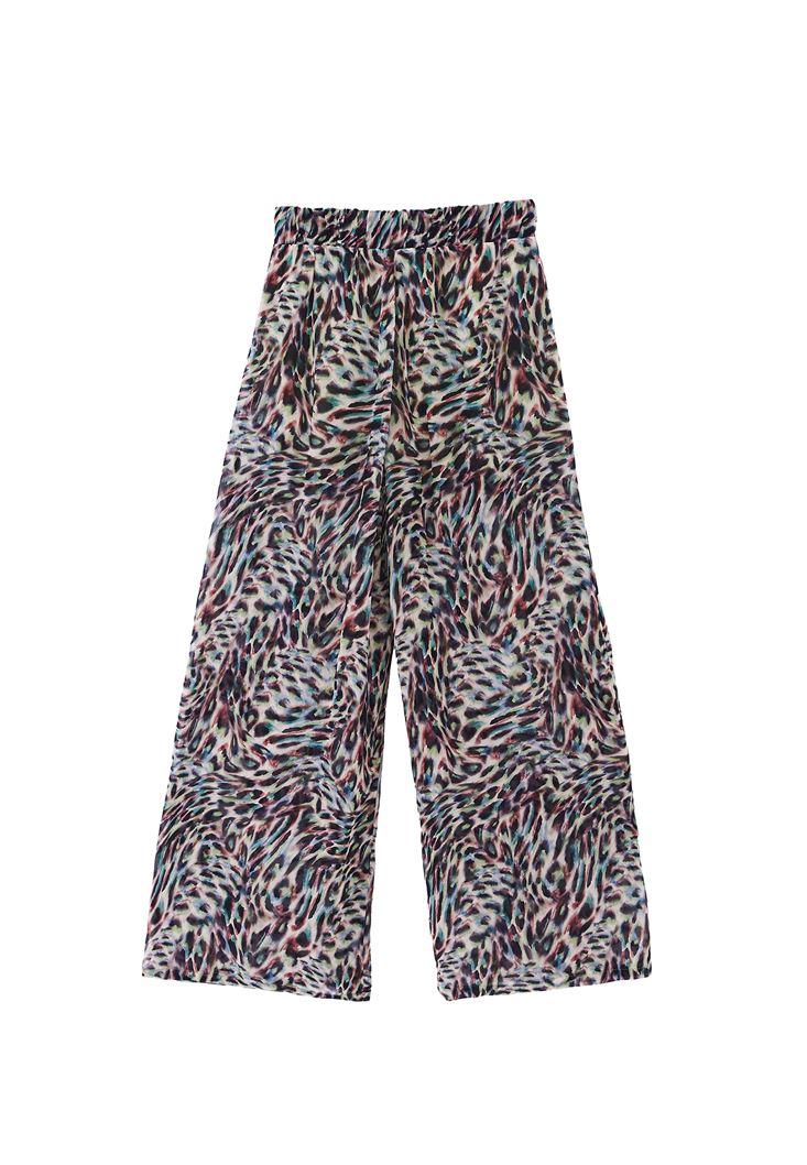 Çok Renkli Yüksek Bel Wide-Leg Pantolon