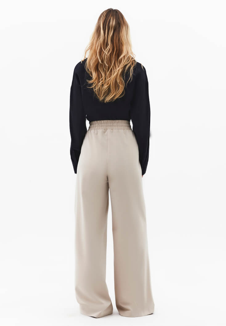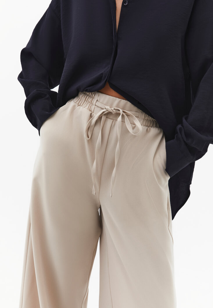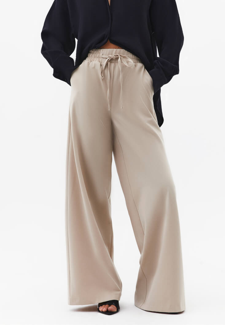 • Bayan Bej Yüksek Bel Wide-Leg Pantolon