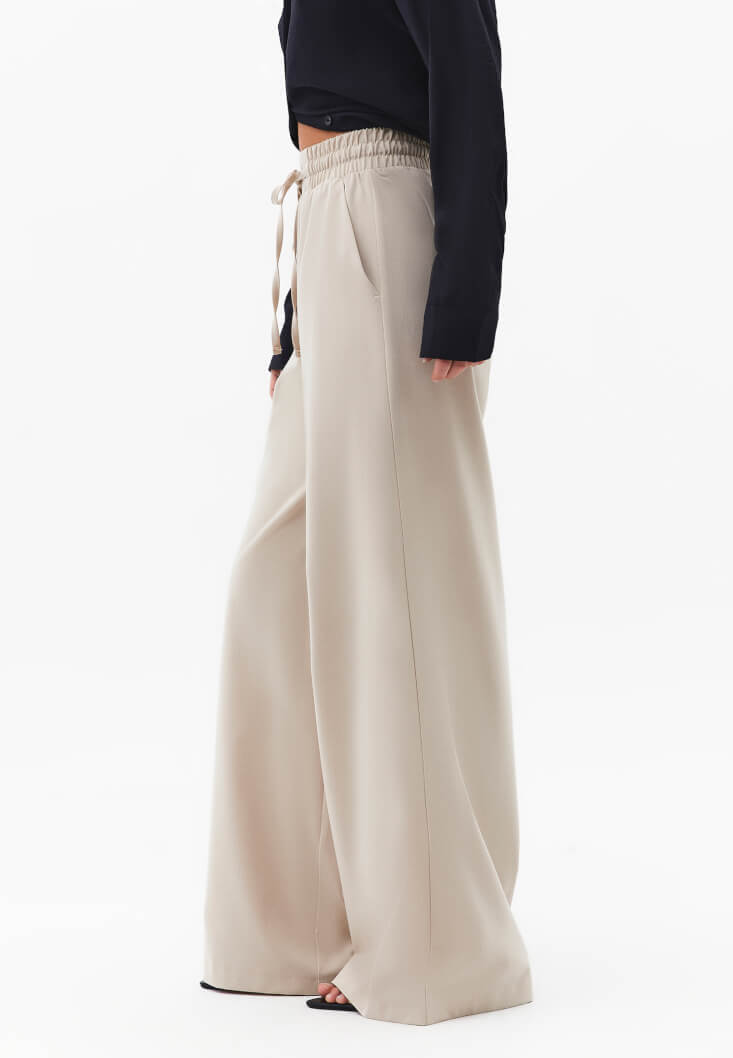 Bej Yüksek Bel Wide-Leg Pantolon