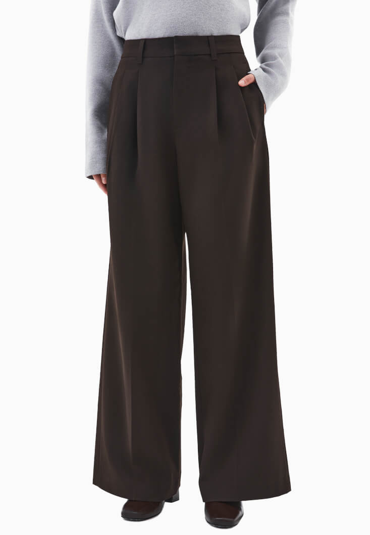 • Bayan Kahverengi Yüksek Bel Wide-Leg Pantolon