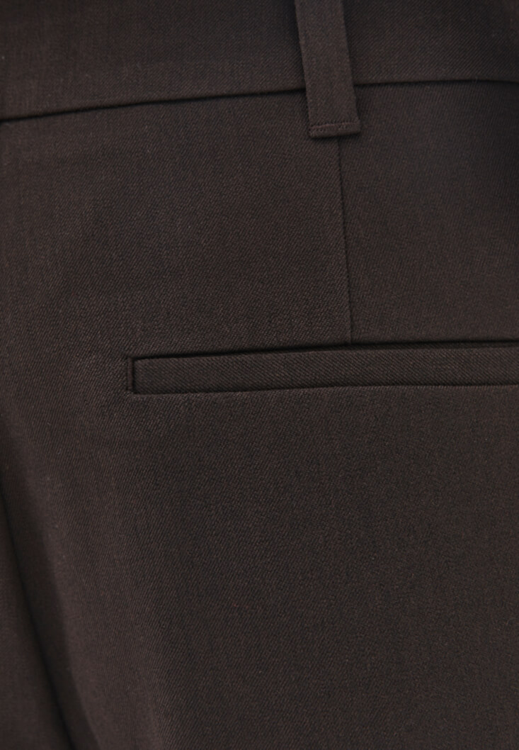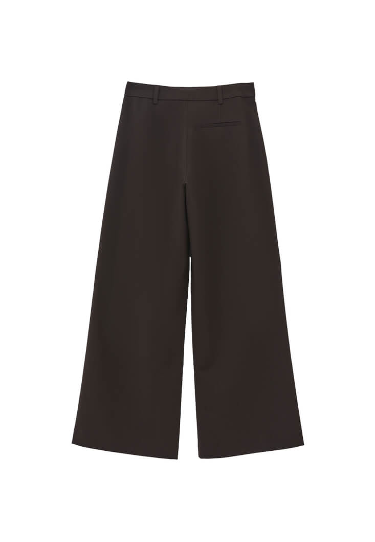 Viskon karışımlı özel doku, bedenden uzak rahat fit, bol paça, yüksek bel, iki cepli, ön bel kısmı pile detaylı.