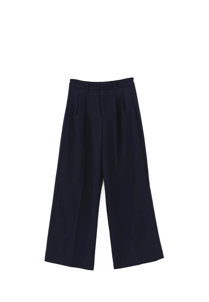 Lacivert Yüksek Bel Wide-Leg Pantolon