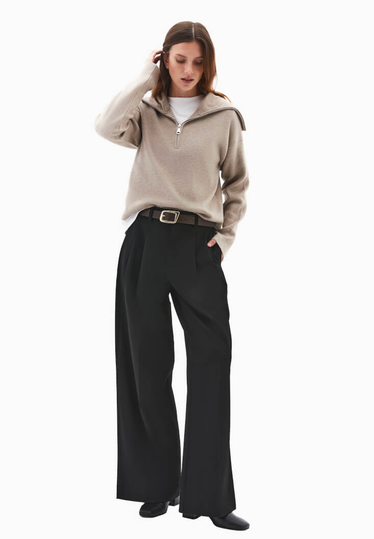 • Bayan Siyah Yüksek Bel Wide-Leg Pantolon