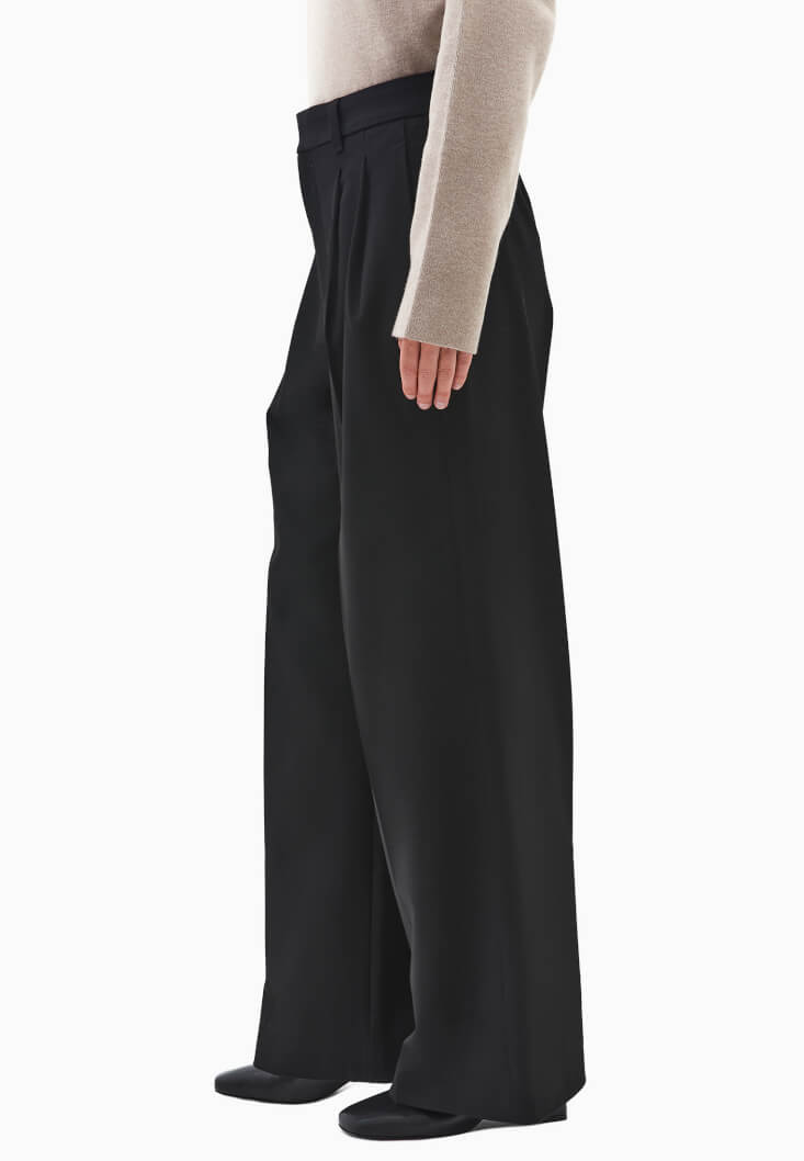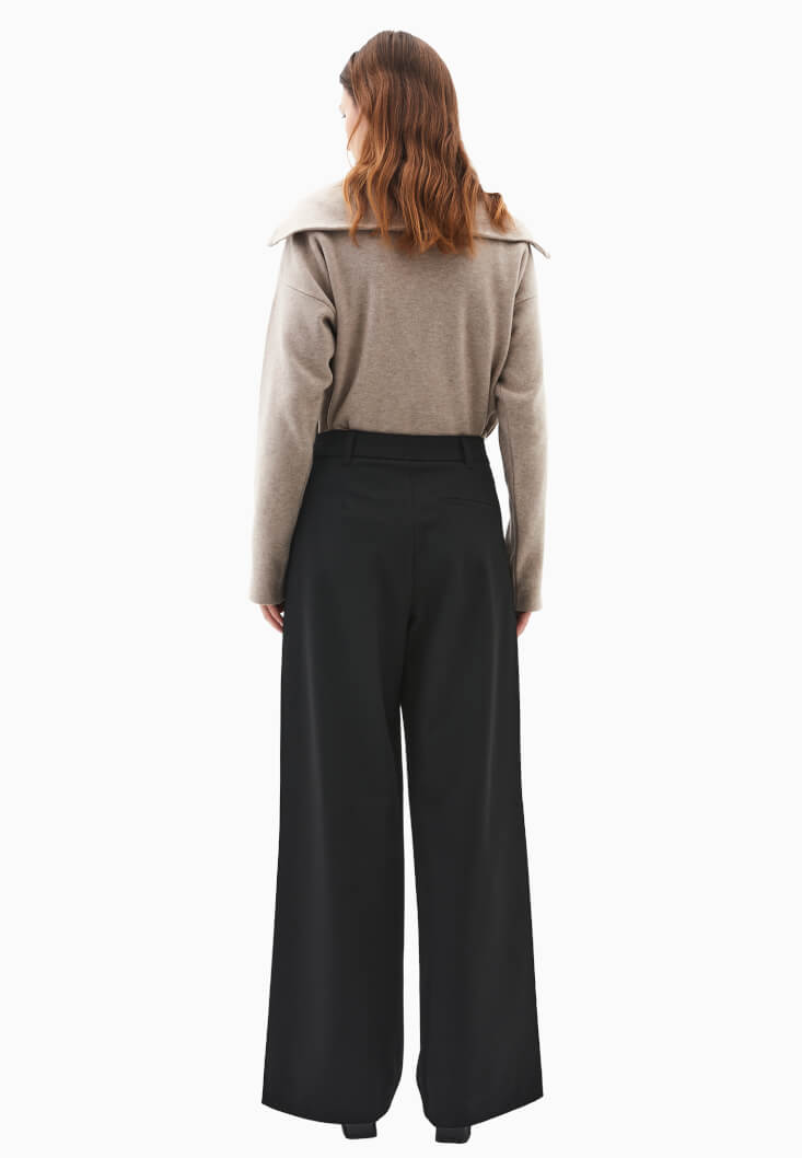 Siyah Yüksek Bel Wide-Leg Pantolon