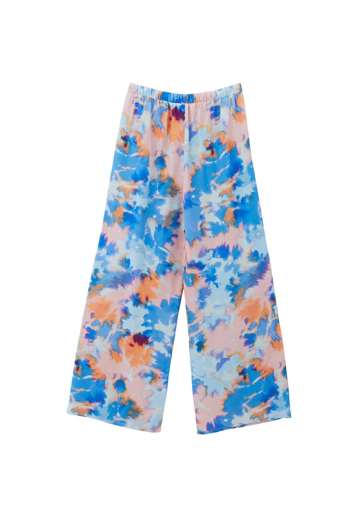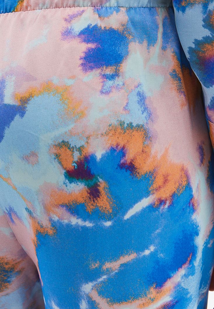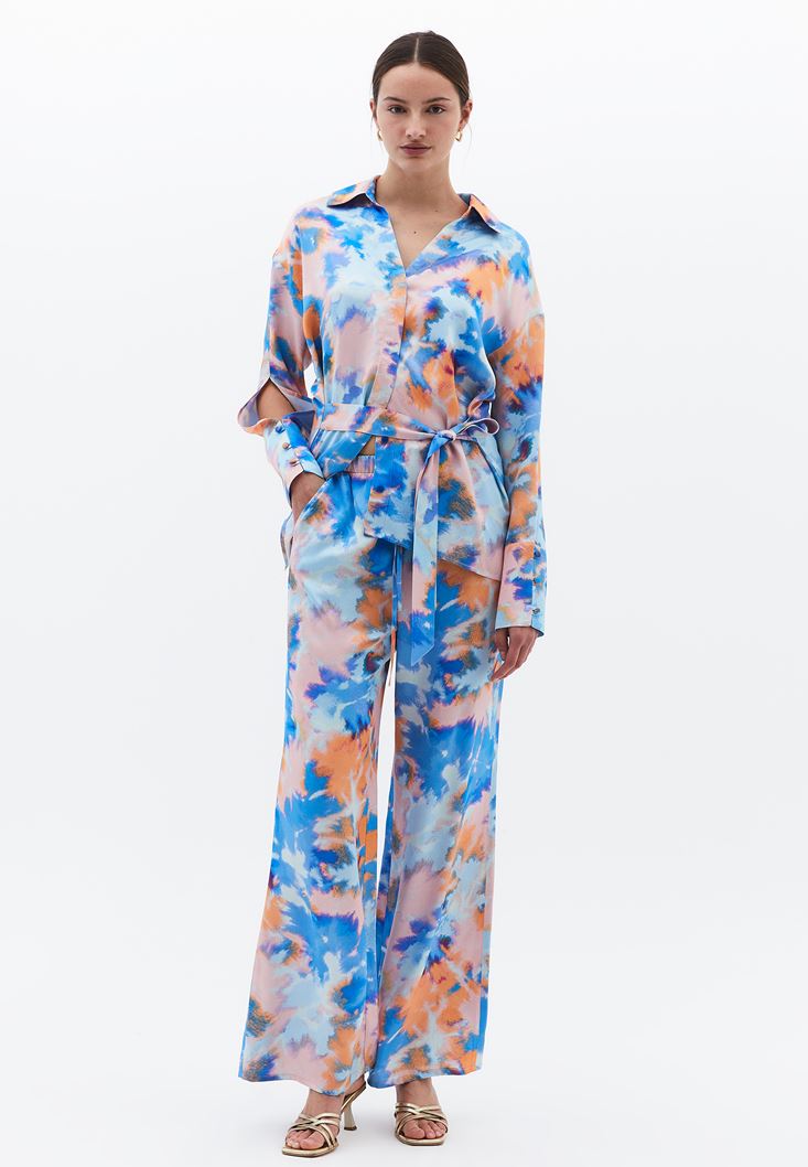 Çok Renkli Yüksek Bel Wide-Leg Saten Pantolon