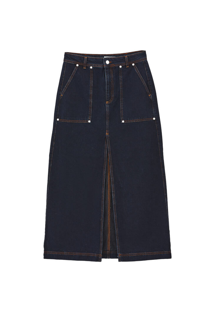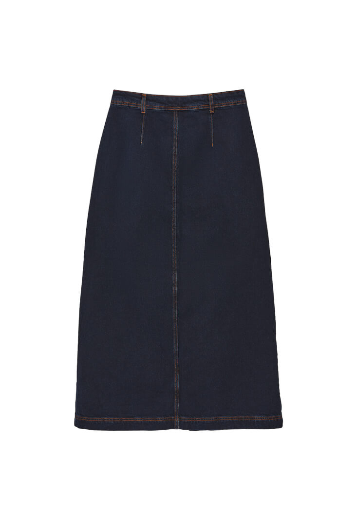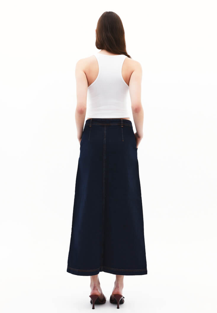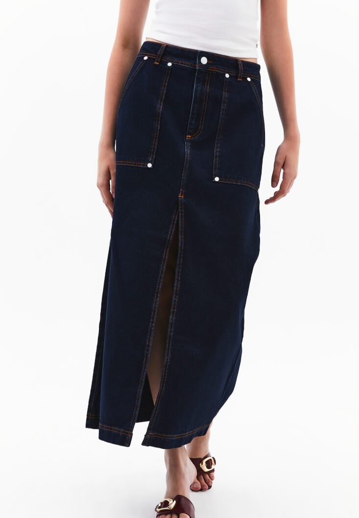 • Bayan Mavi Yüksek Bel Yırtmaçlı Denim Etek