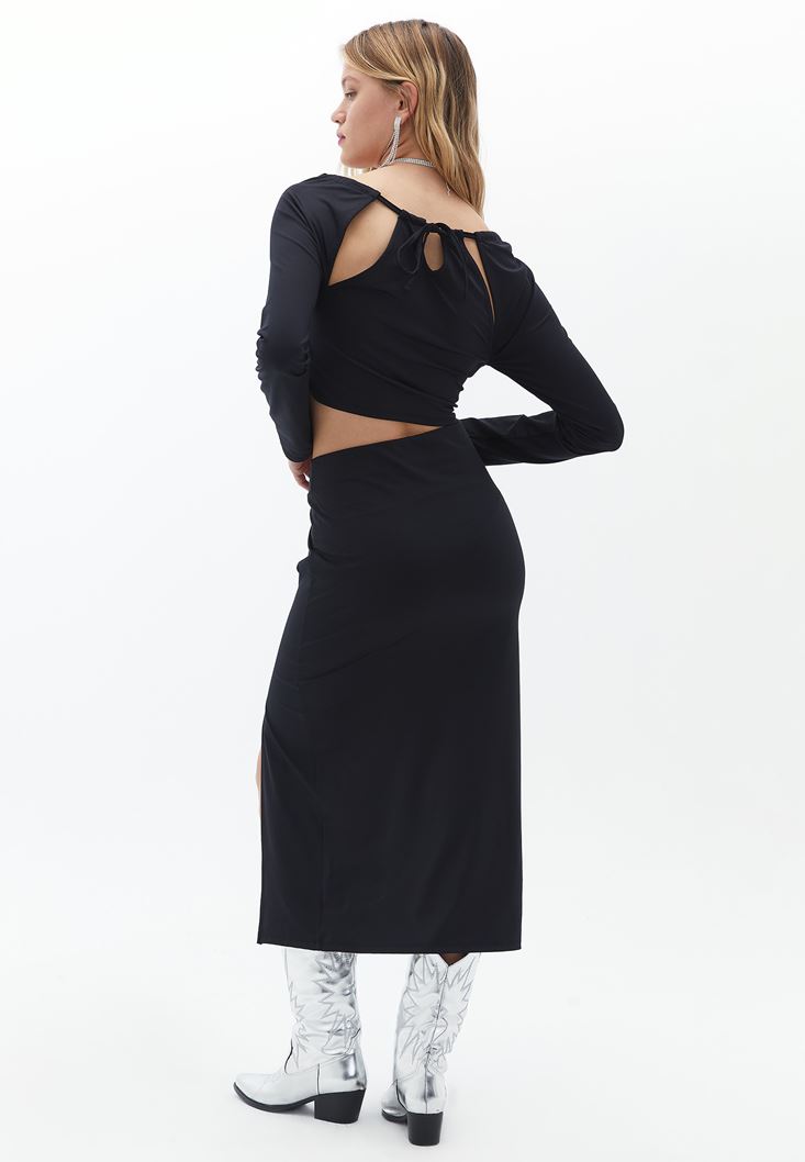 • Bayan Siyah Yüksek Bel Yırtmaçlı Midi Etek