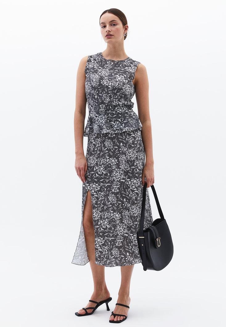 Oxxo Yüksek Bel Yırtmaçlı Midi Etek 2191255206