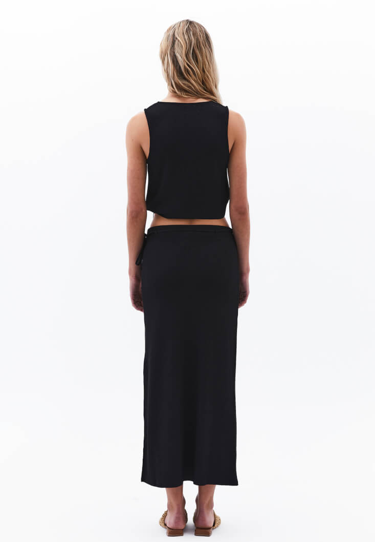 Siyah Yüksek Bel Yırtmaçlı Uzun Etek