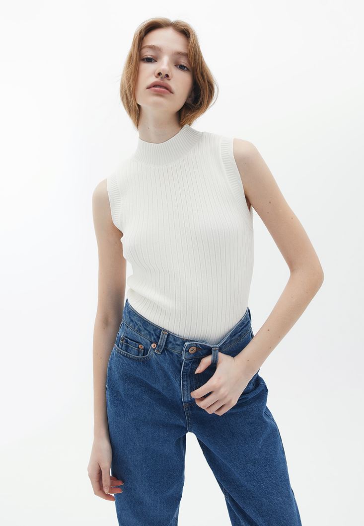 Yüksek Yaka Atlet ve Mom-Fit Pantolon Kombini