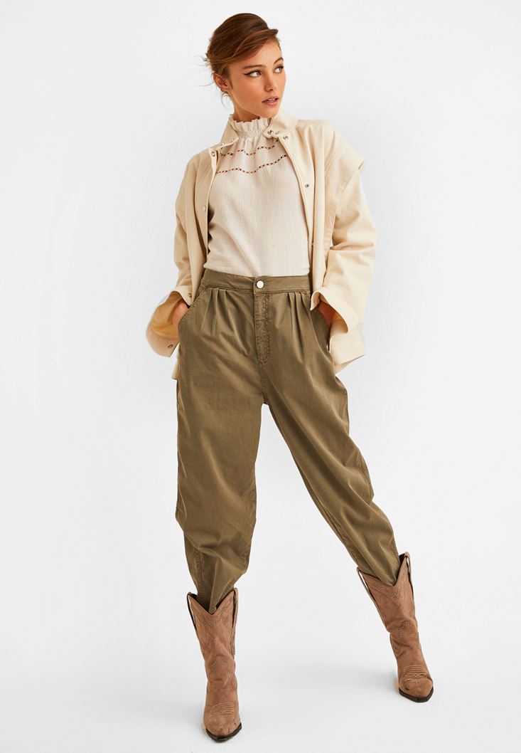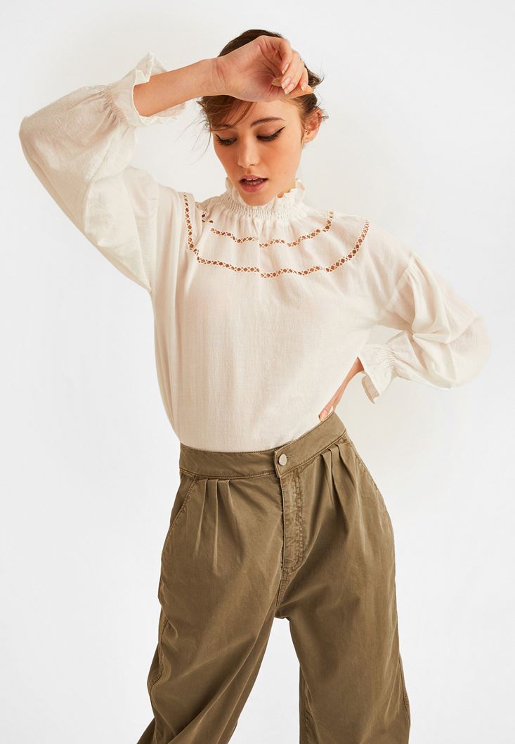 Yüksek Yaka Balon Kollu Bluz modeli, pamuk ve viskon içerikli mükemmel dokusu ile yeni sezonda sizlerle buluşuyor. Kadın bluz modeli, yakasında ve kol kısmında yer alan fırfır detayı sayesinde fazlasıyla dikkat çekiyor. Balon kollu bluz modelinin omuz bölümünde yer alan nakış ayrıntıları sayesinde romantik bir görünüm yakalayabilirsiniz. Yüksek belli kumaş pantolonlarla veya çiçek desenli eteklerle bir araya getirebileceğiniz kadın bluz modeli ile harikalar yaratabilirsiniz. Balon kollu bluz modeli ile oluşturacağınız nostaljik esintili kombinleri kısa ceketlerle tamamlayabilirsiniz. Oxxo'nun göze hitap eden hoş detaylarla sizlere sunduğu kadın bluz modelleri ile tarzınıza hareket katabilirsiniz.
