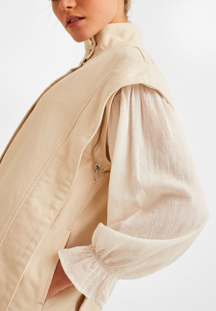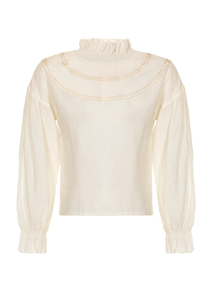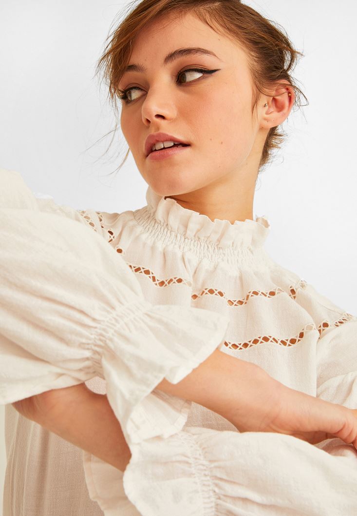 • Bayan Krem Yüksek Yaka Balon Kollu Bluz