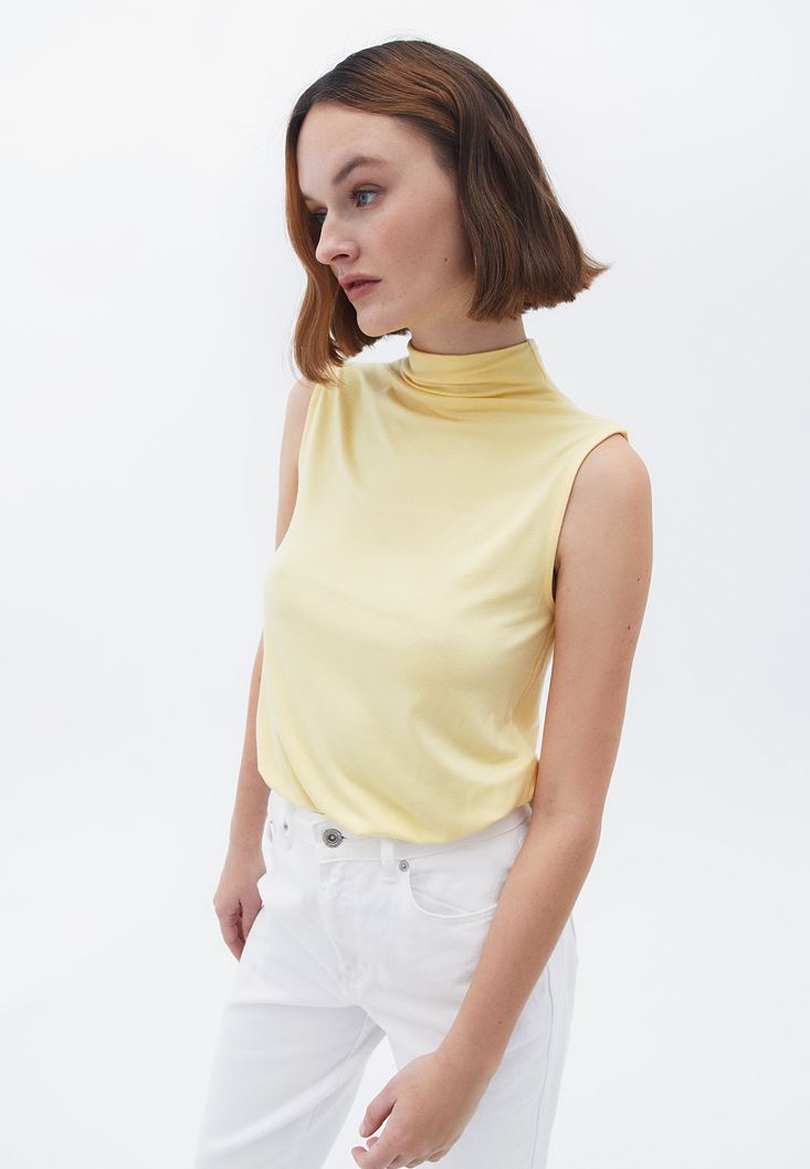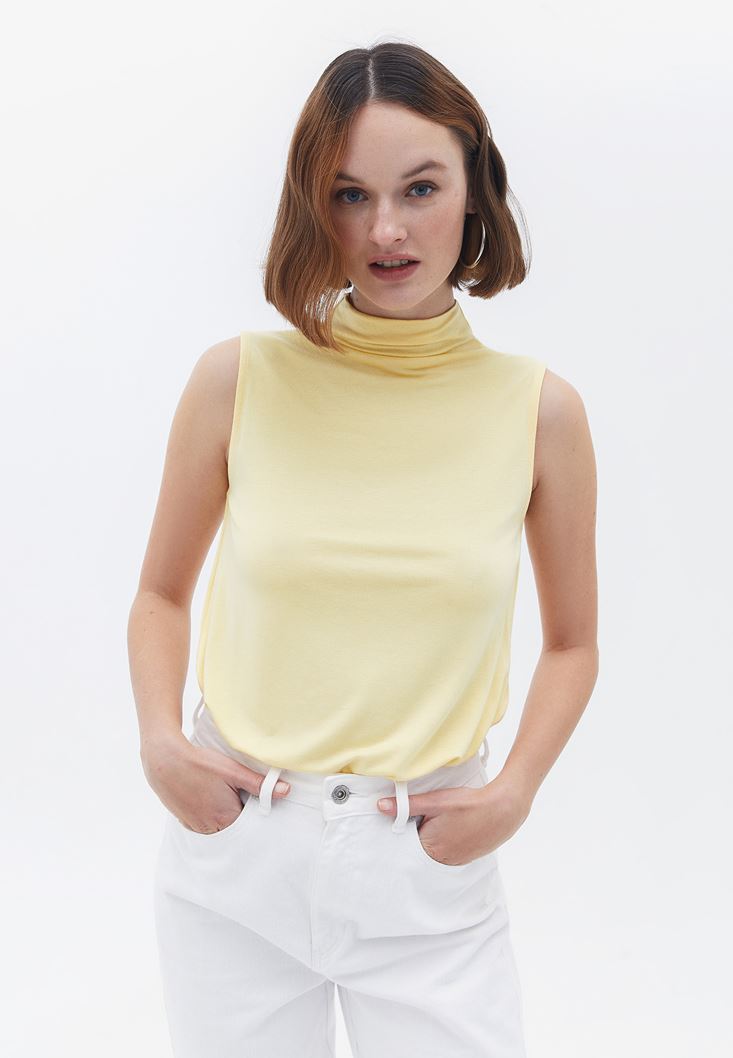 Yüksek Yaka Bluz modeli, viskon içerikli yumuşacık dokusu ve hoş renkleri ile yeni sezonda sizlerle buluşuyor. Kadın bluz modeli, yarım balıkçı yaka kesimi ve bedeni hafifçe saran kalıbı ile Oxxo'da karşınıza çıkıyor. Kolsuz görünümü ile zariflik sunan kadın bluz modeli, kombinleriniz için ideal bir seçenek oluyor. Kadın bluz modeli ile günlük hayatınızda jean pantolonlardan ve hırkalardan oluşan hoş kombinler yapabilirsiniz. Eteklerle kullanabileceğiniz kadın bluz modelini, iş ortamınıza da dahil edebilirsiniz. Oxxo'nun hayran bırakan dokularla ve farklı detaylarla sizlere sunduğu kadın bluz modelleri ile moda dünyasına kolaylıkla adapte olabilirsiniz.