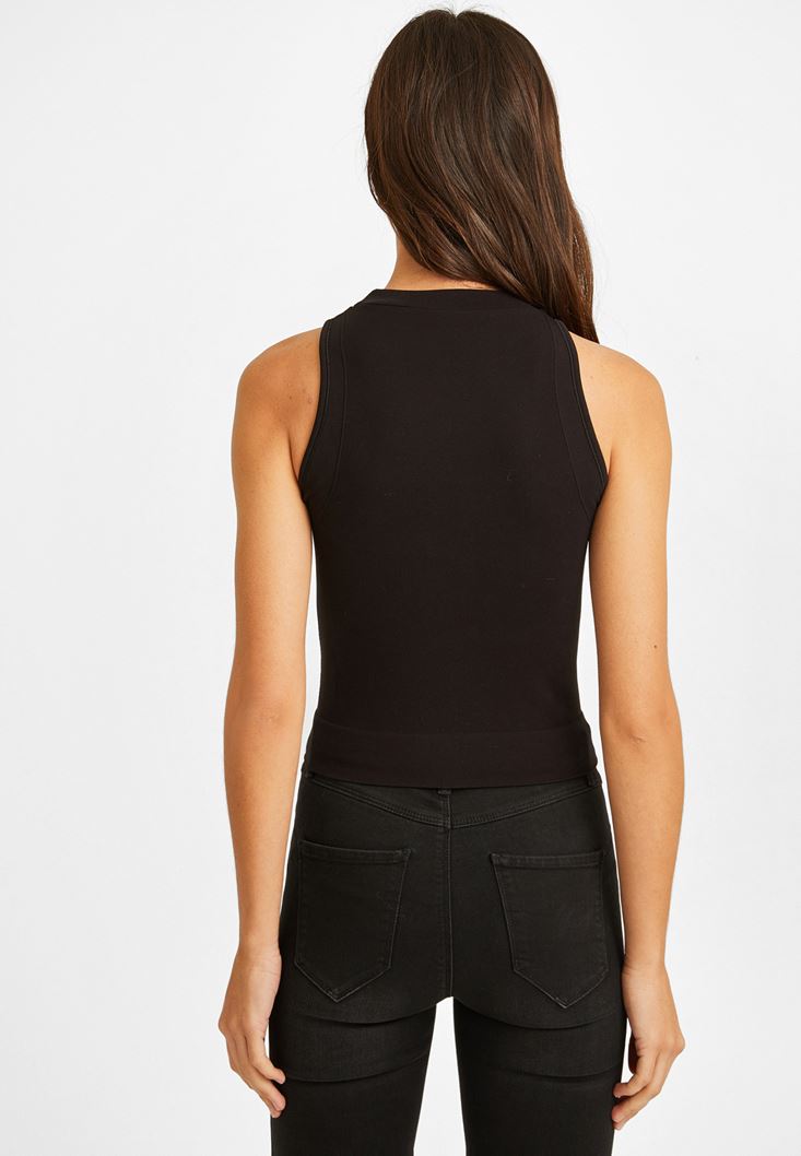 Siyah Yüksek Yaka Dikişsiz Atlet