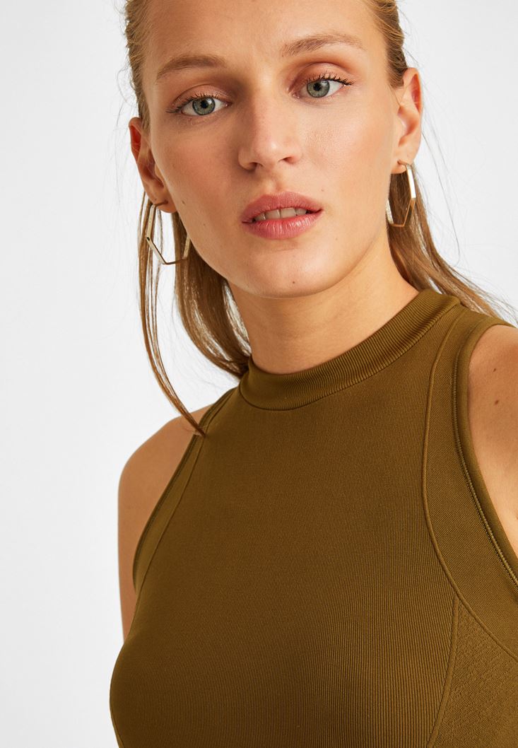 Yeşil Yüksek Yaka Dikişsiz Atlet