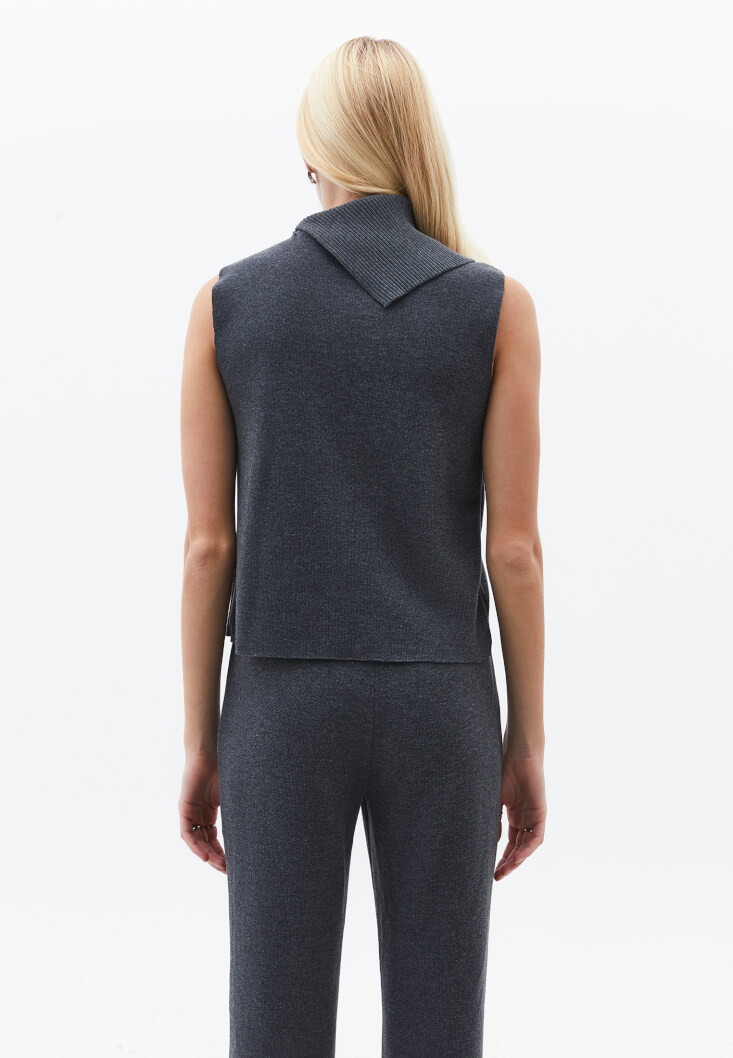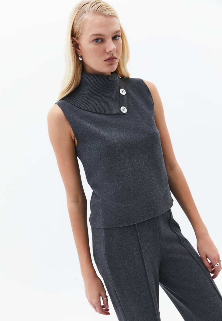 Füme Yüksek Yaka Düğmeli Süveter