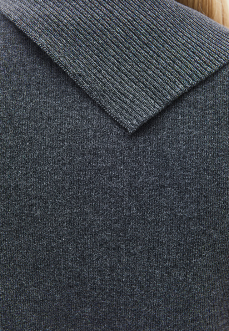 • Bayan Füme Yüksek Yaka Düğmeli Süveter